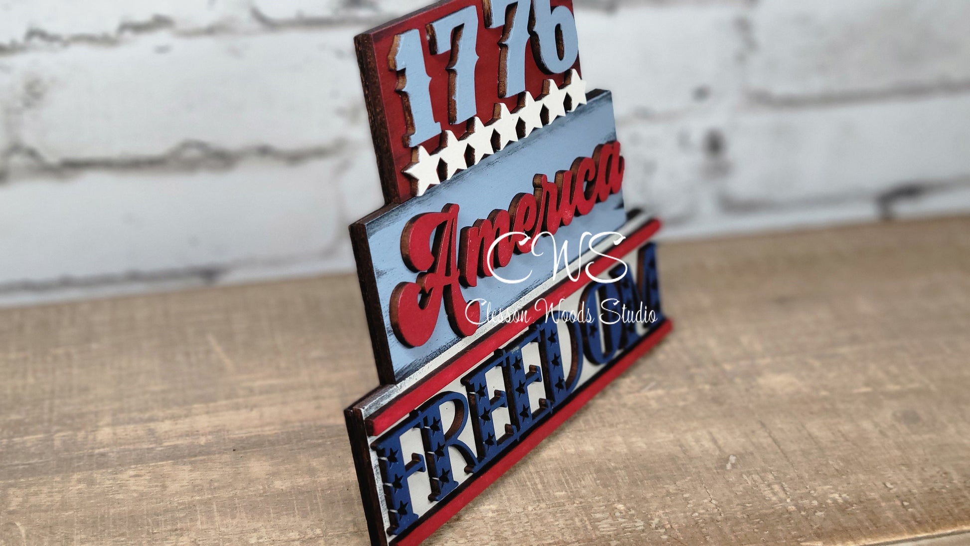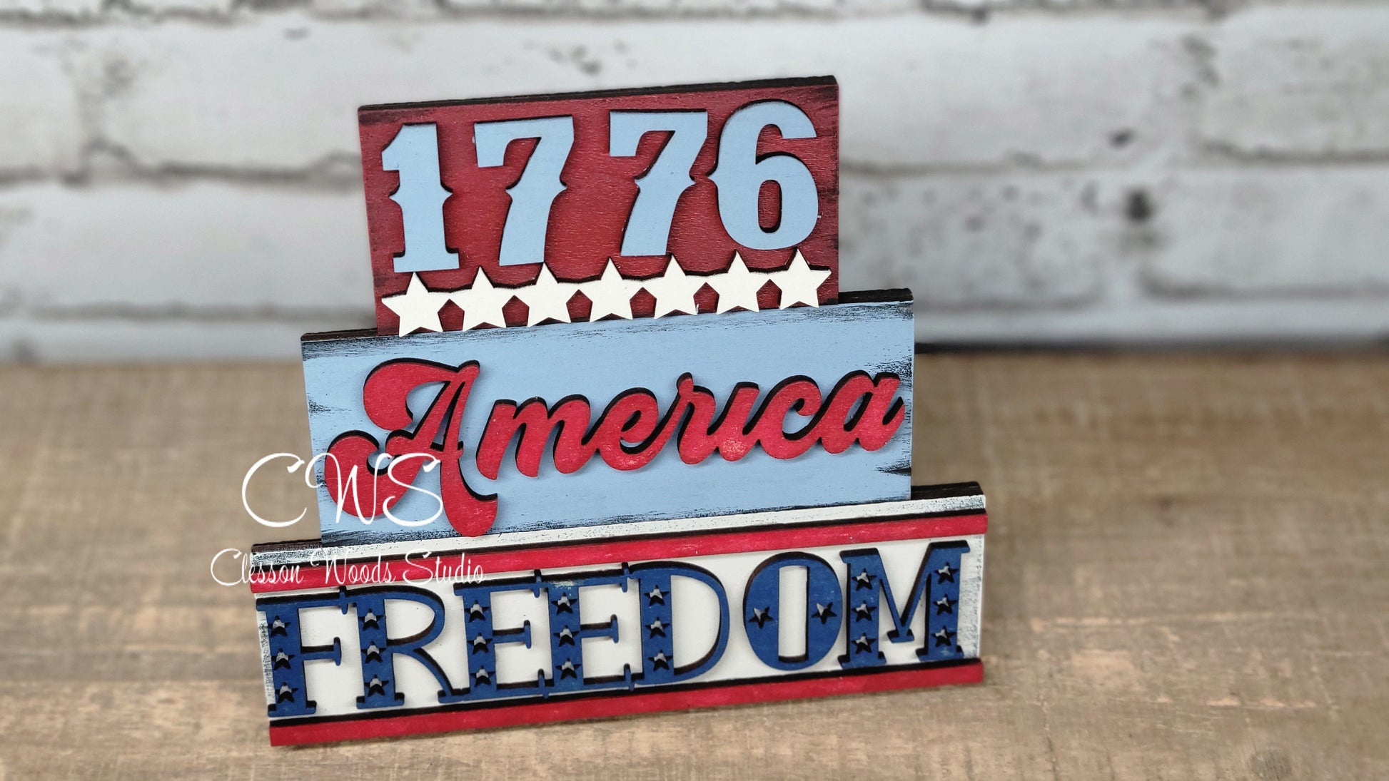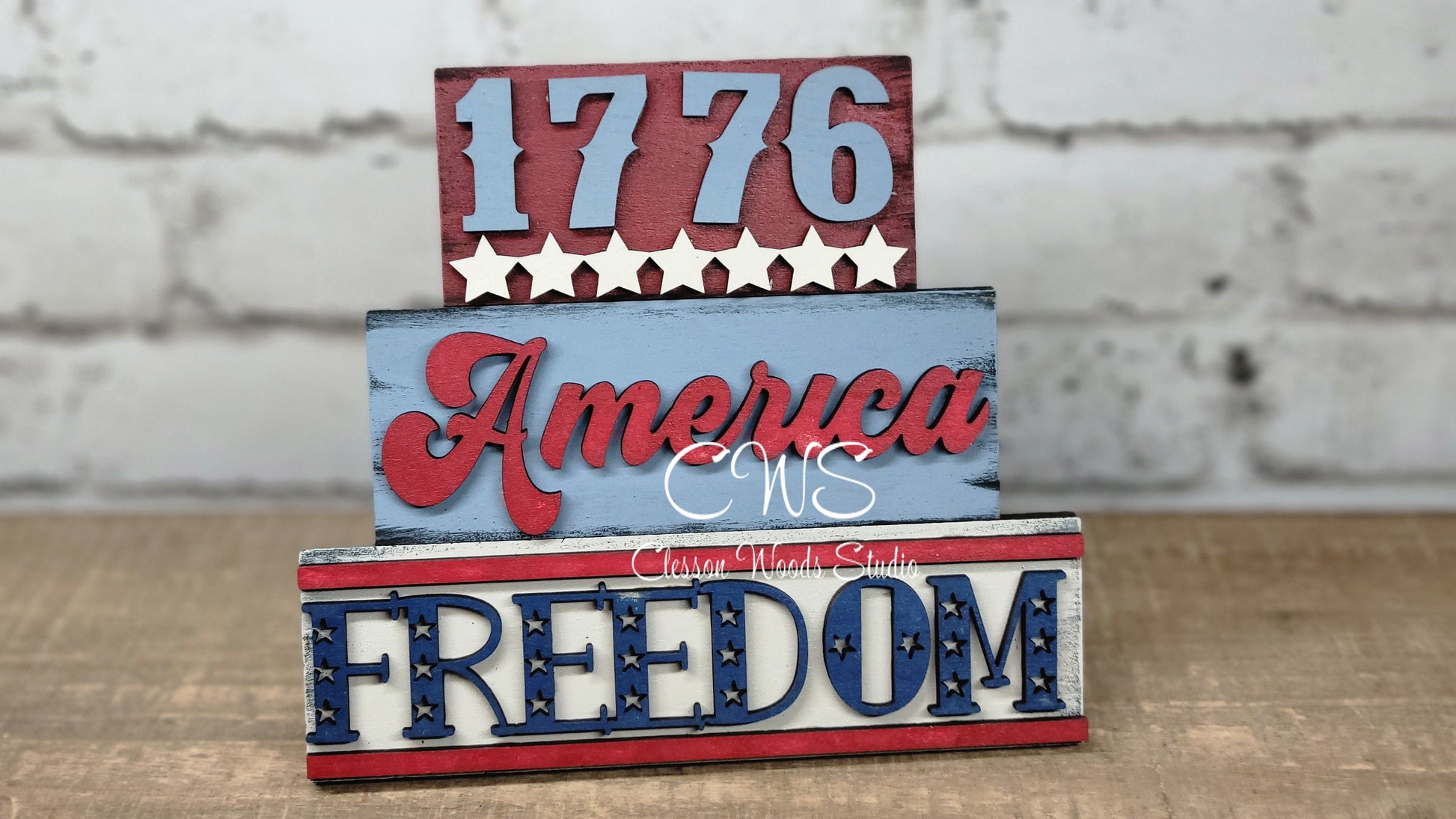 1776 Stars America Freedom Mini Wood Word Block Sign