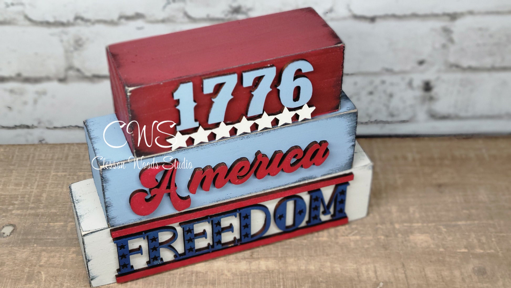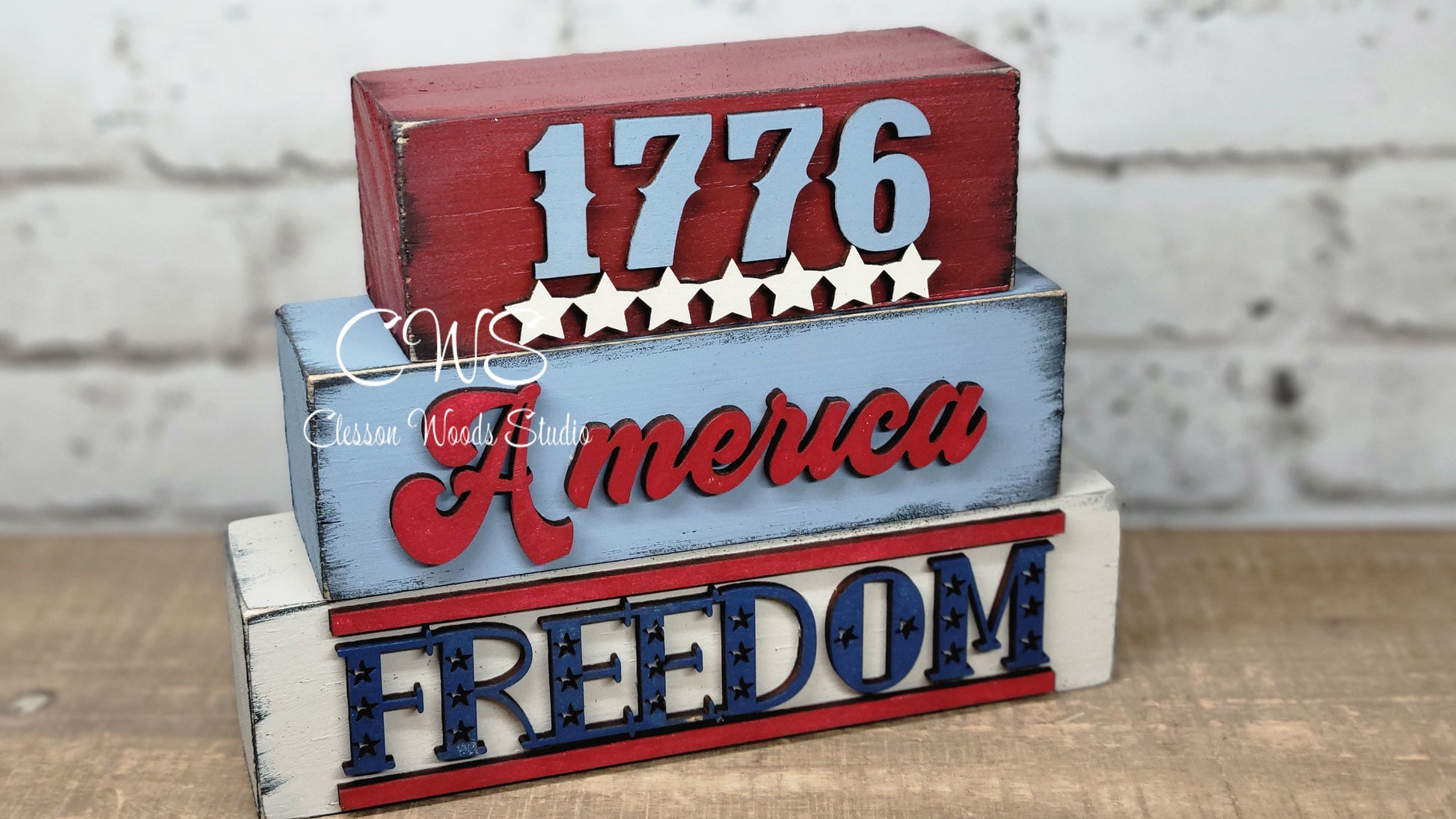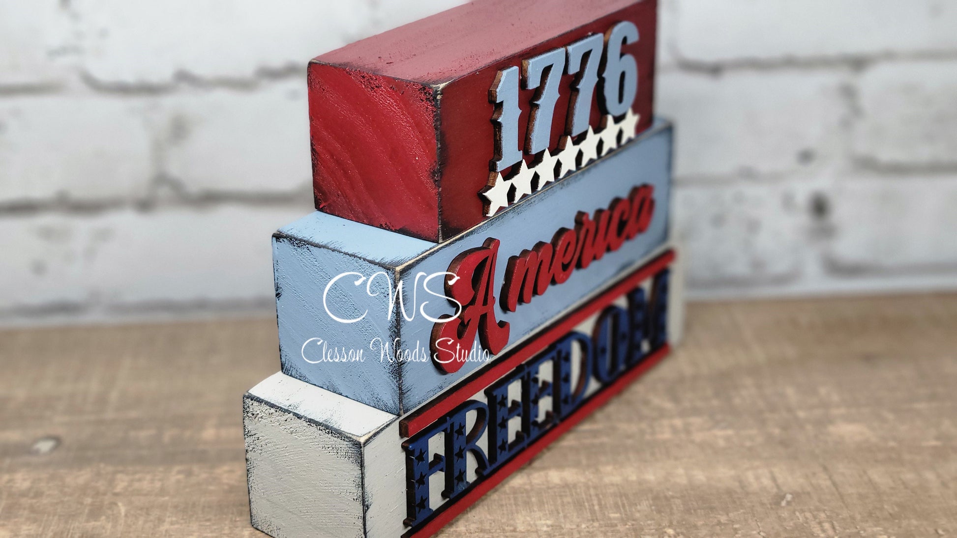 You will want a set of my wood word block stack for each season. The set is 4.5 inches tall, 6 inches wide and 1.5 inches thick. Each set is cut from premium 2x2 wood and cut to size. This set is painted in the primitive style with black undertones. The topcoat is applied over the black and leaves a rustic edge. The lettering is laser cut and hand painted to coordinate with the block set. Blocks are not glued together for ease of shipping and off-season storage. Although sealed, these are not intended for outdoor use.