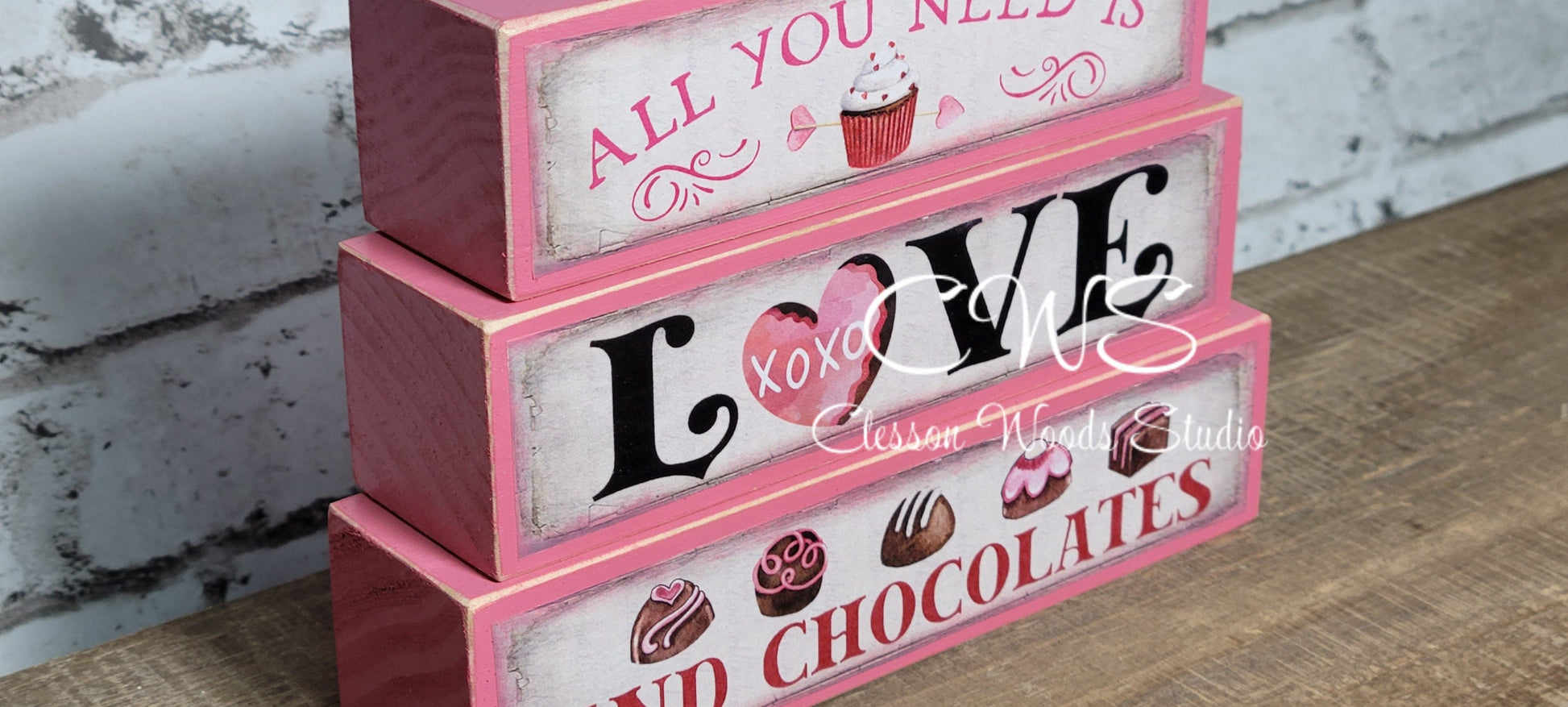 All You Need Is Love and Chocolates Pink Wood Block Stack