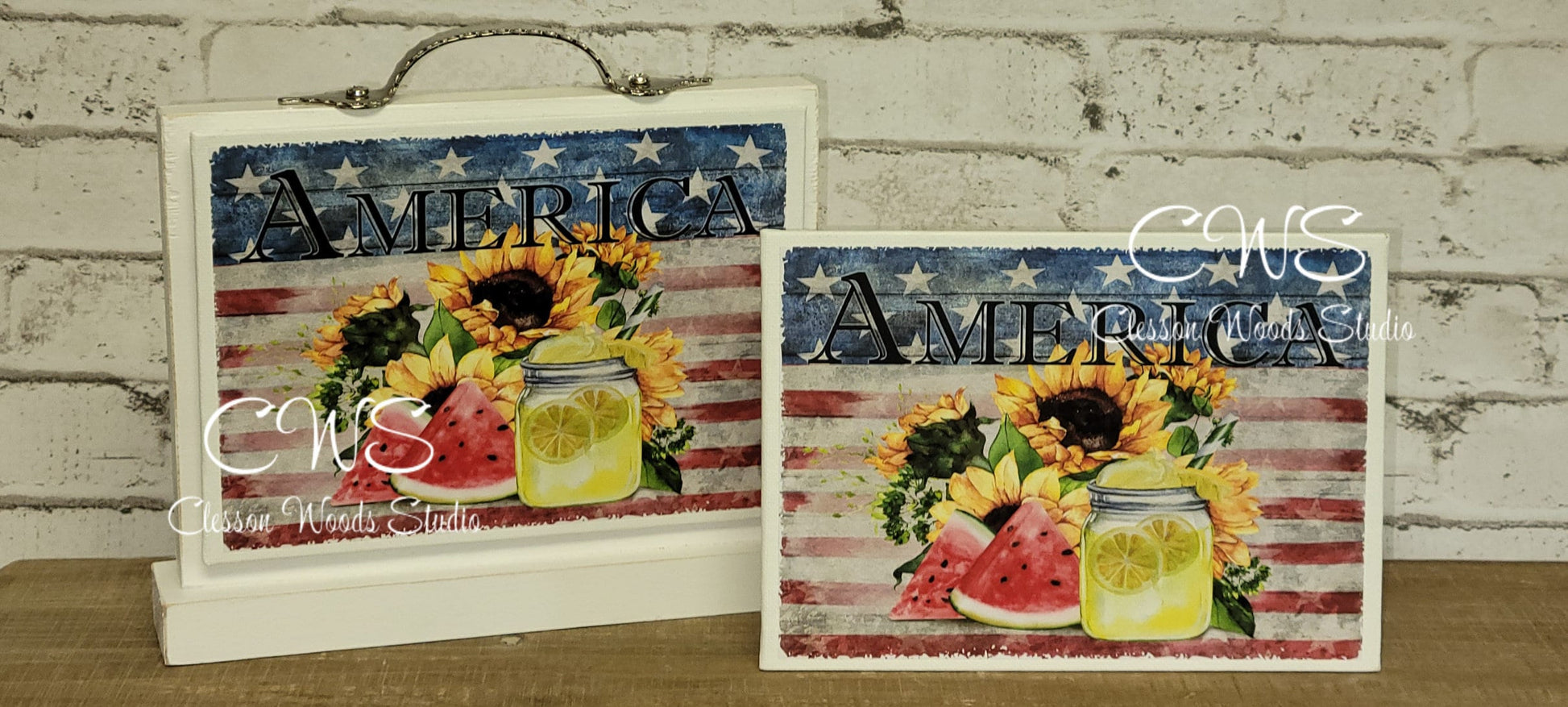 America Watermelon Lemonade Sunflower 7" x 5" Interchangeable Canvas or Display Set