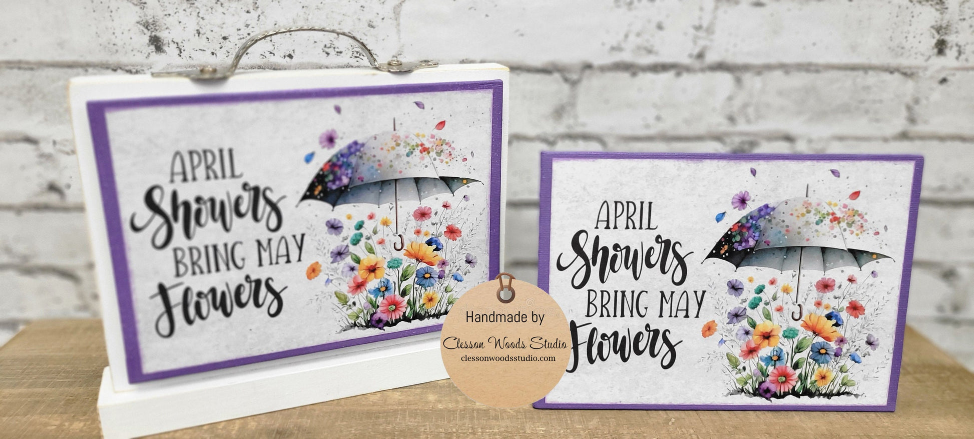 April Showers Bring May Flowers Umbrella Flowers 7" x 5" Interchangeable Canvas or Display Set