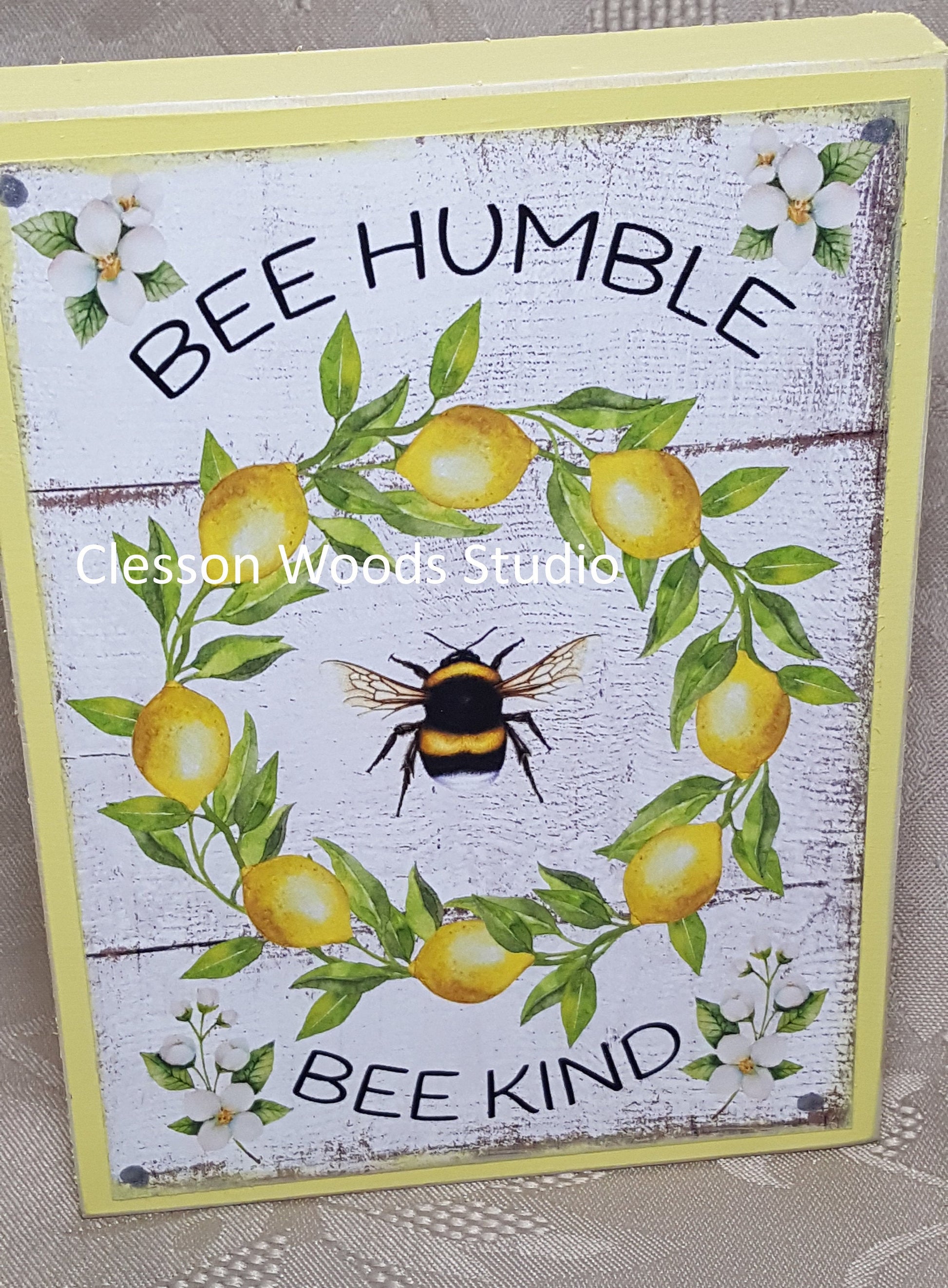 Let my line of lemon wood block signs brighten your summer decor. Each wood sign is made from high quality pine (no knots) that I cut to 4" x 5 1/2" (small) and 5 1/2" x 7 1/2" (large) and is 3/4" thick. Each block is painted with quality satin paint before applying the printed design. The design is permanently applied and followed by painting around the edge with matching paint to blend the design into the painted wood. The edges are sanded to reveal the raw wood for a slightly worn look. This would look great in your tiered tray or sitting on your counter, table or shelf.