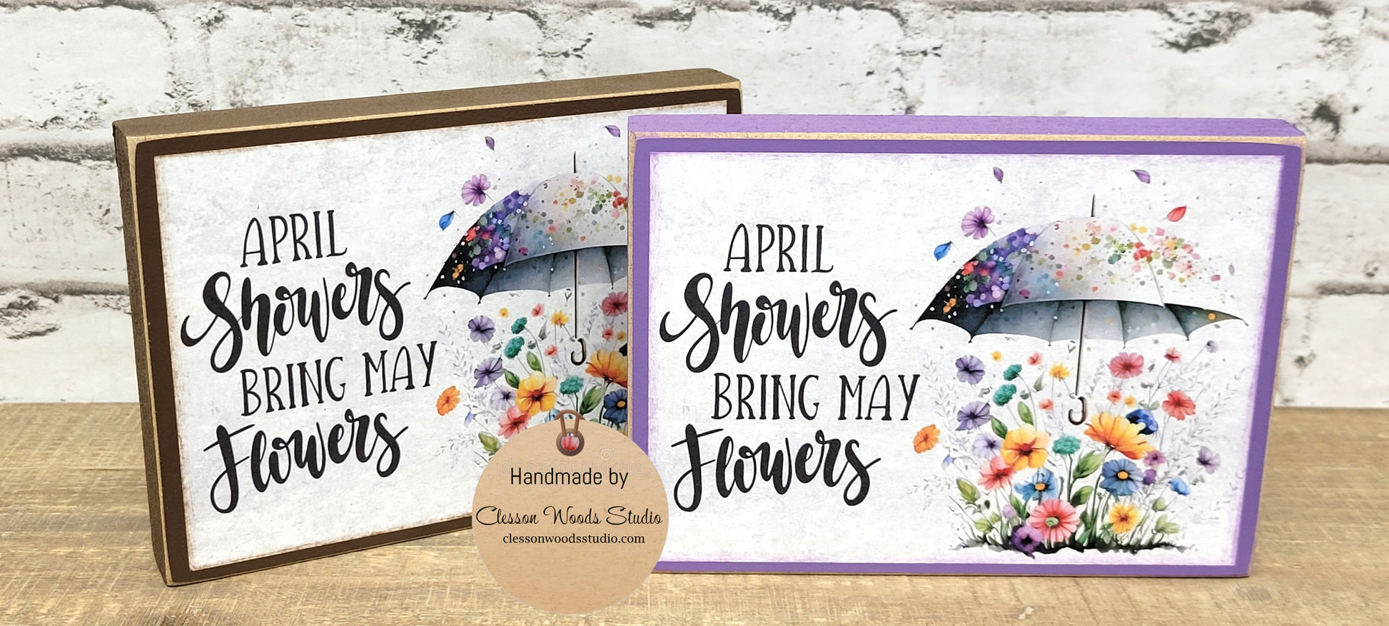 April Showers Bring May Flowers and Umbrella Wood Block Sign