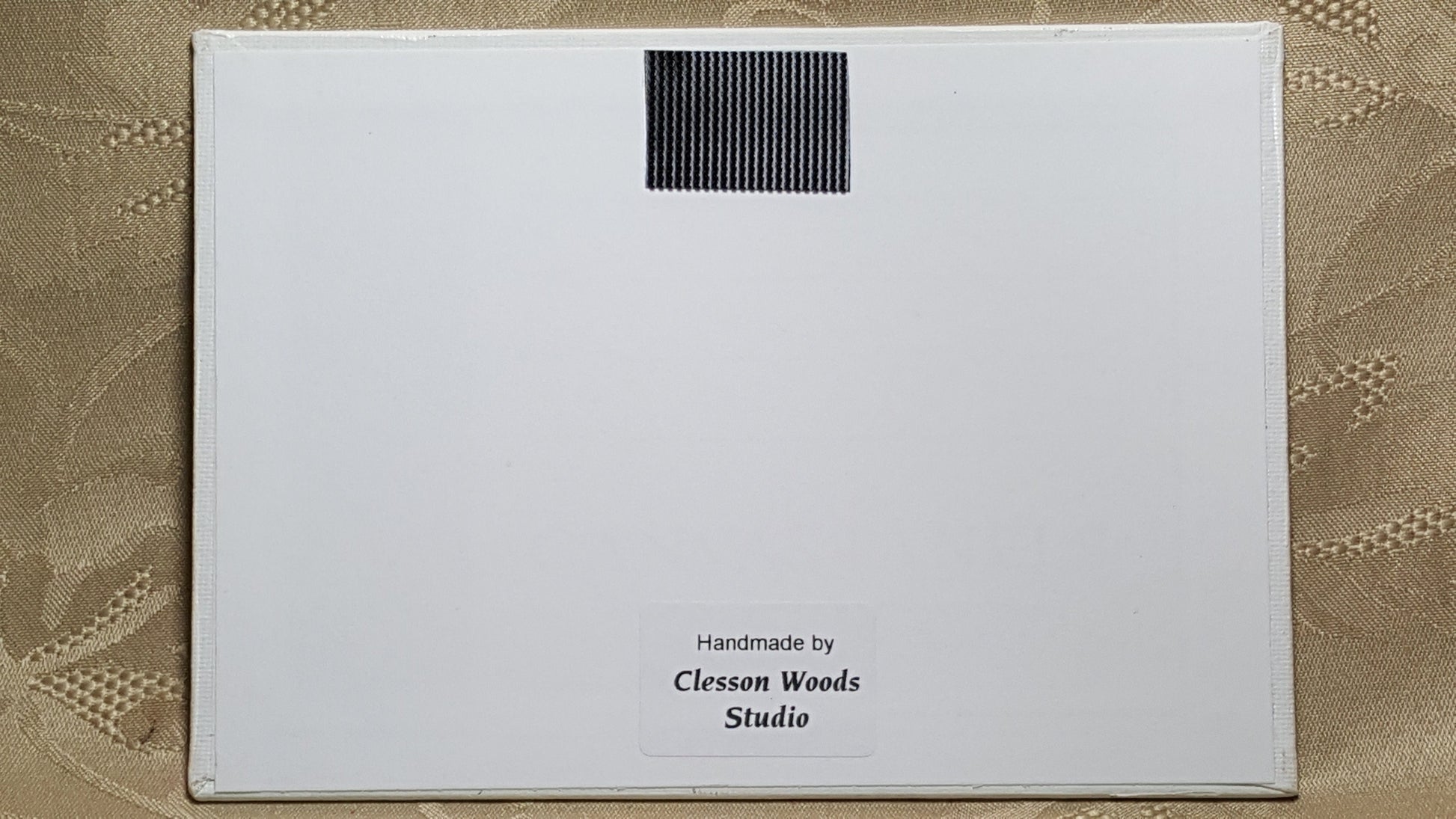 The back is nicely finished and comes with hook & loop fastener (either attached or included) for use with the block style insert holder.