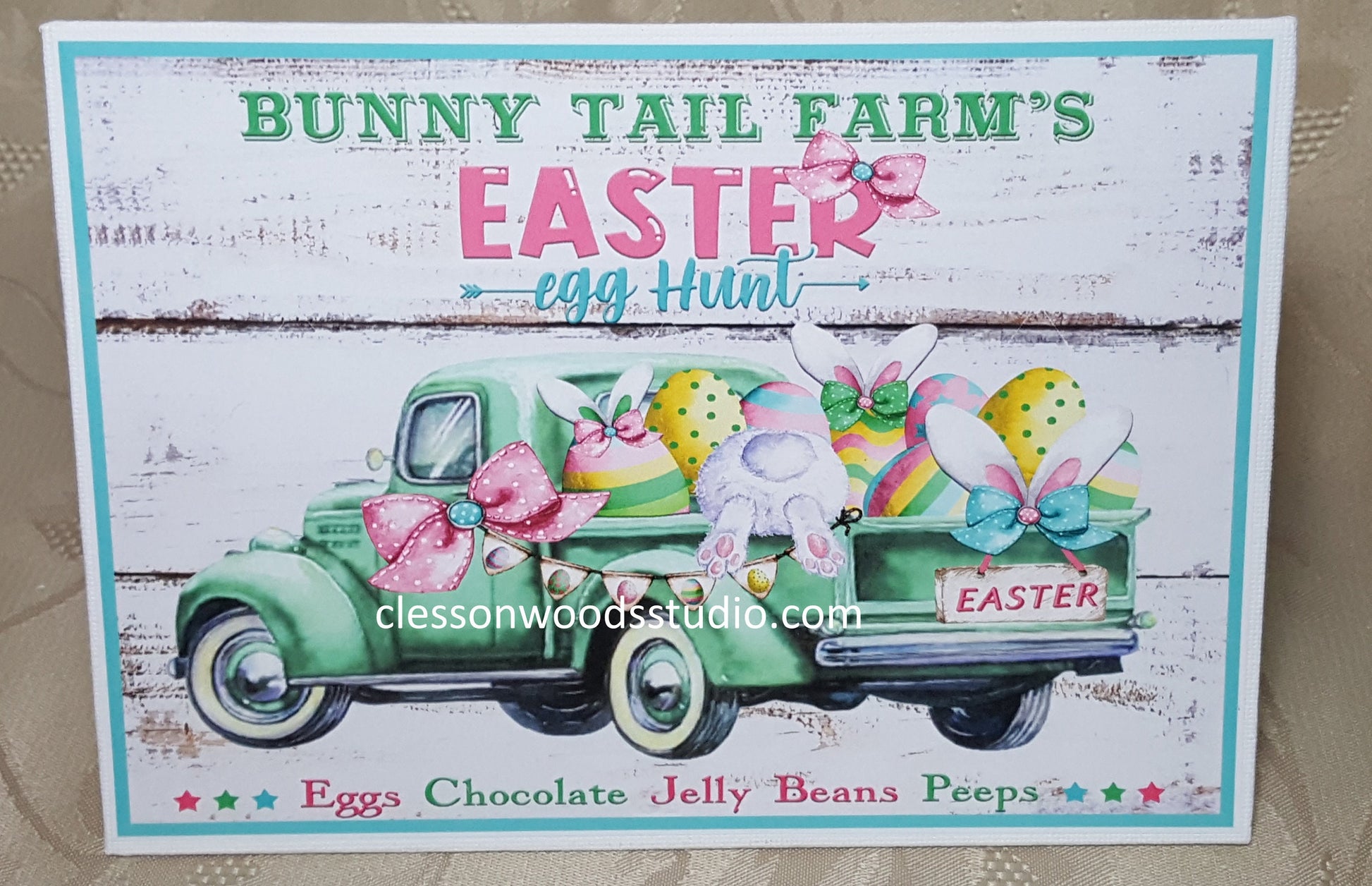 Easter Bunny Tail Farms (Lt Blue Border) 7"x5" Canvas