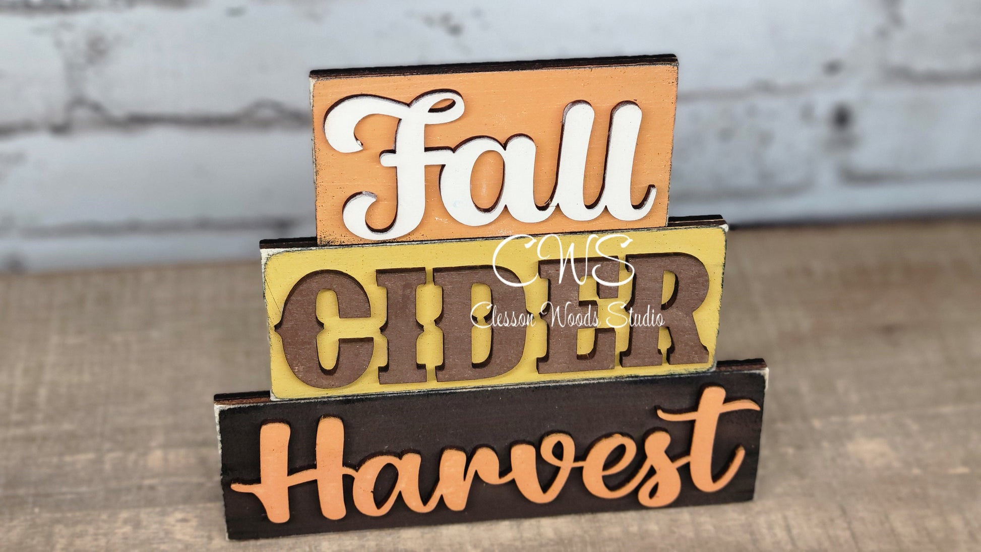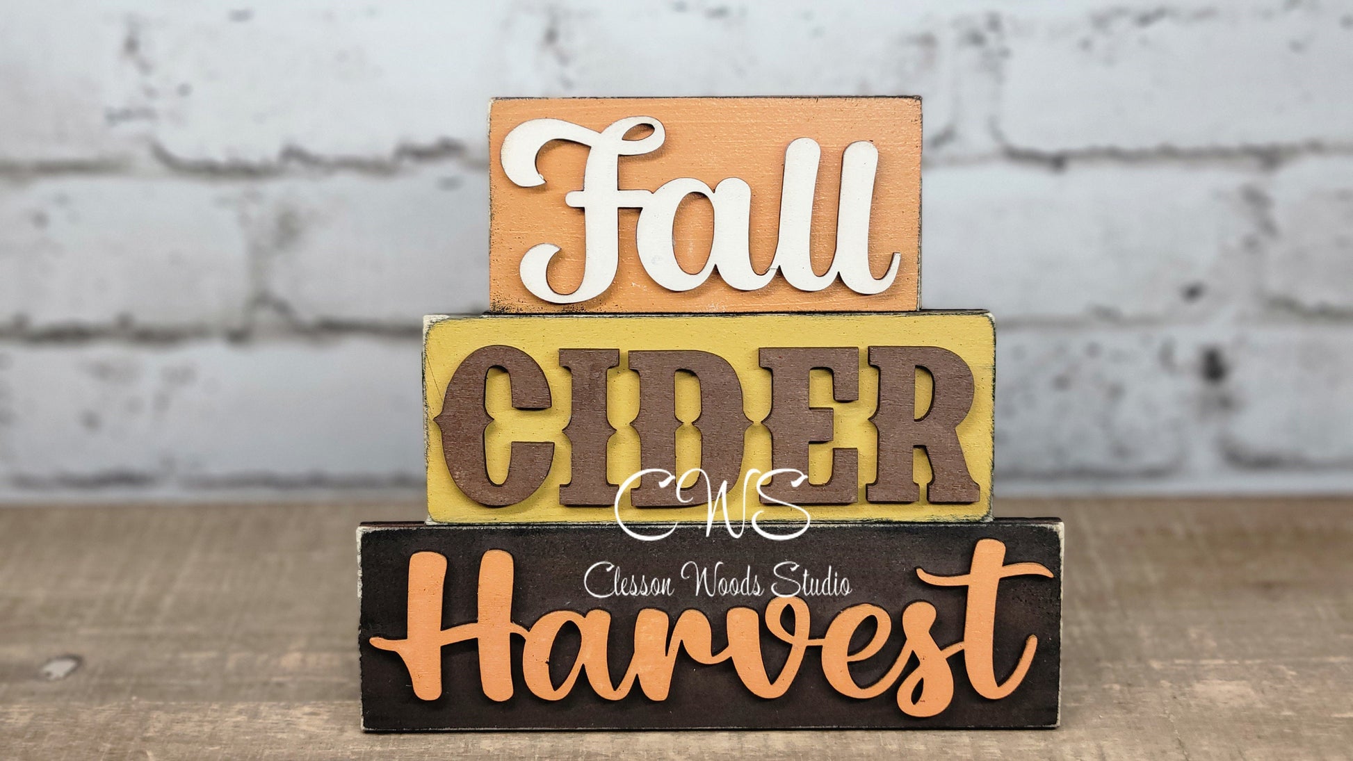 Fall Cider and Harvest Mini Wood Word Block Sign