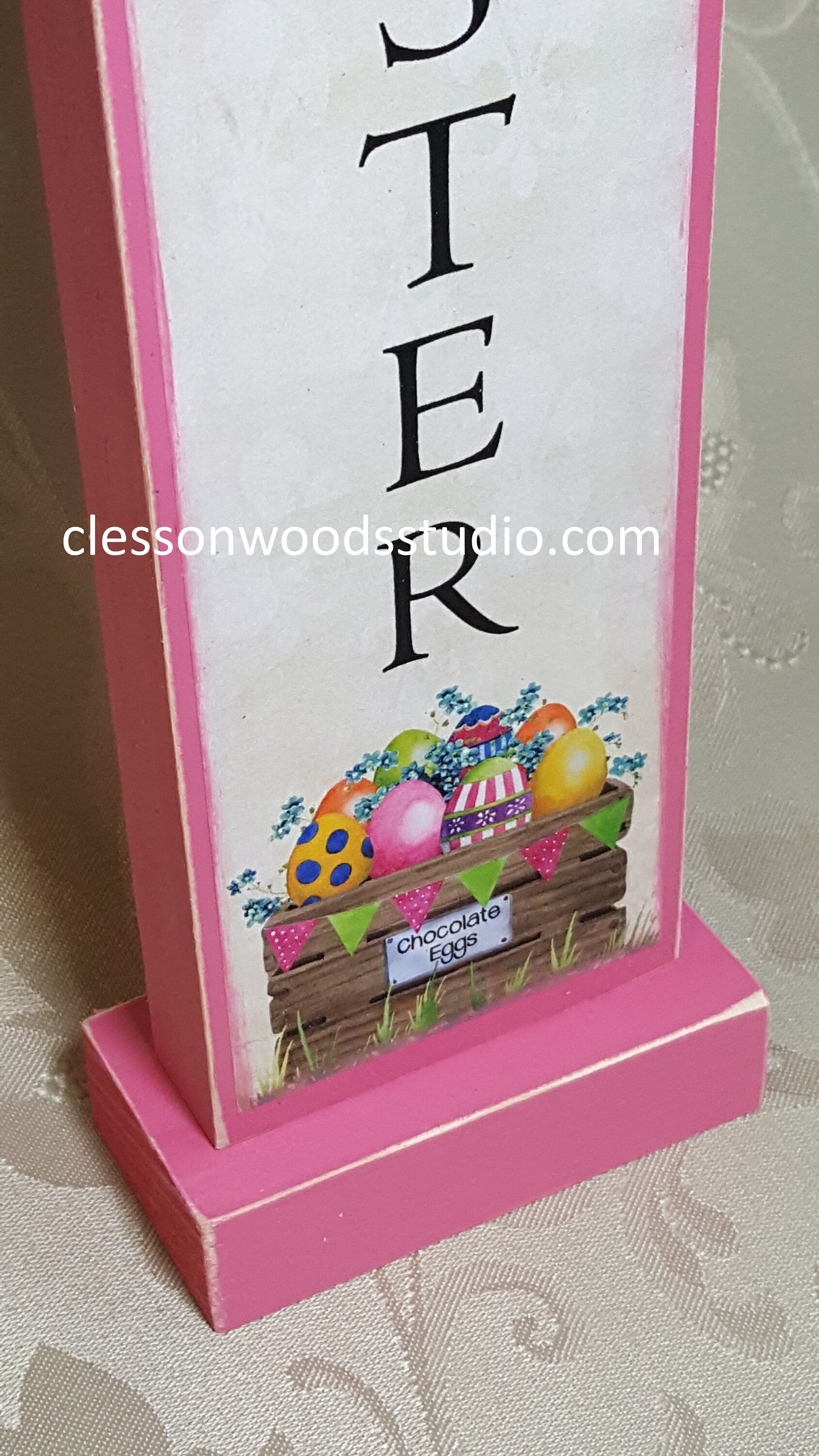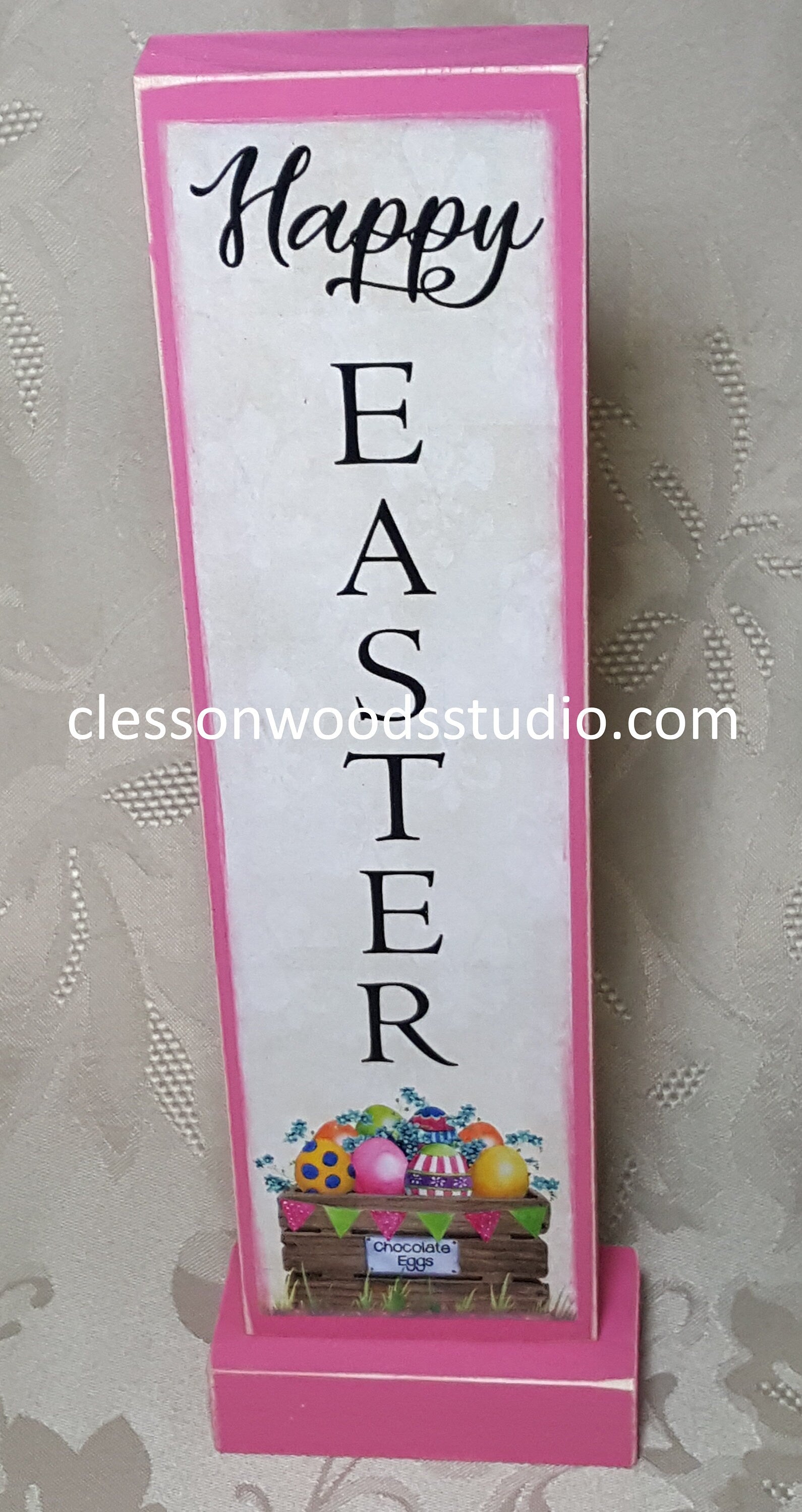 Happy Easter Crate of Eggs Vertical Wood Sign