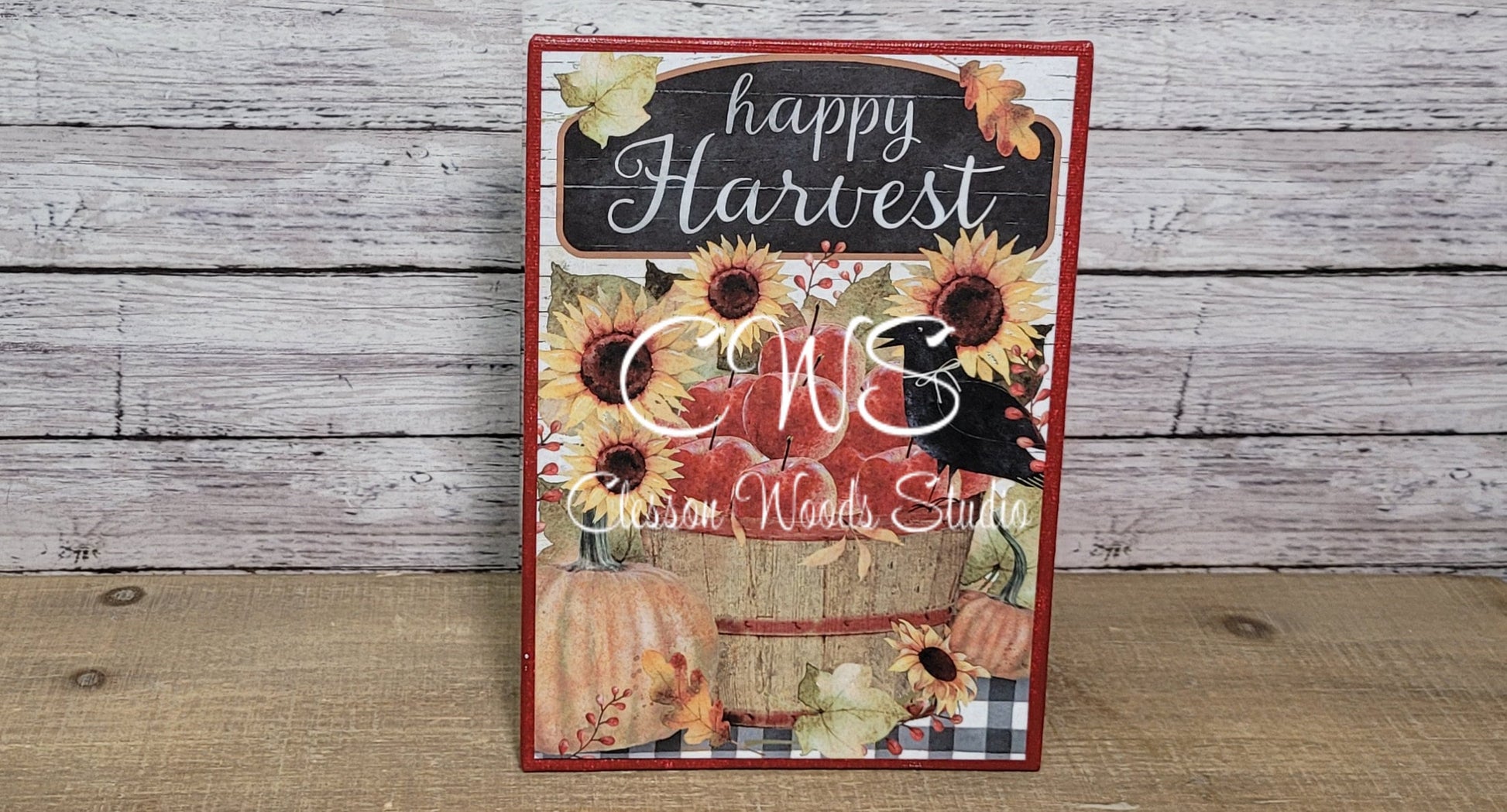 Happy Harvest Bushel Basket of Apples (Red) 5"x7" Canvas Insert