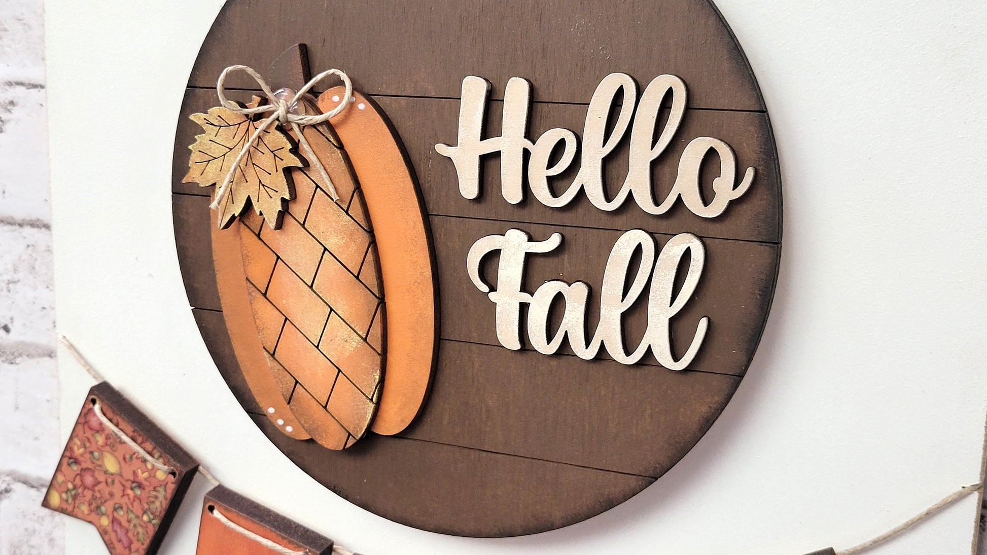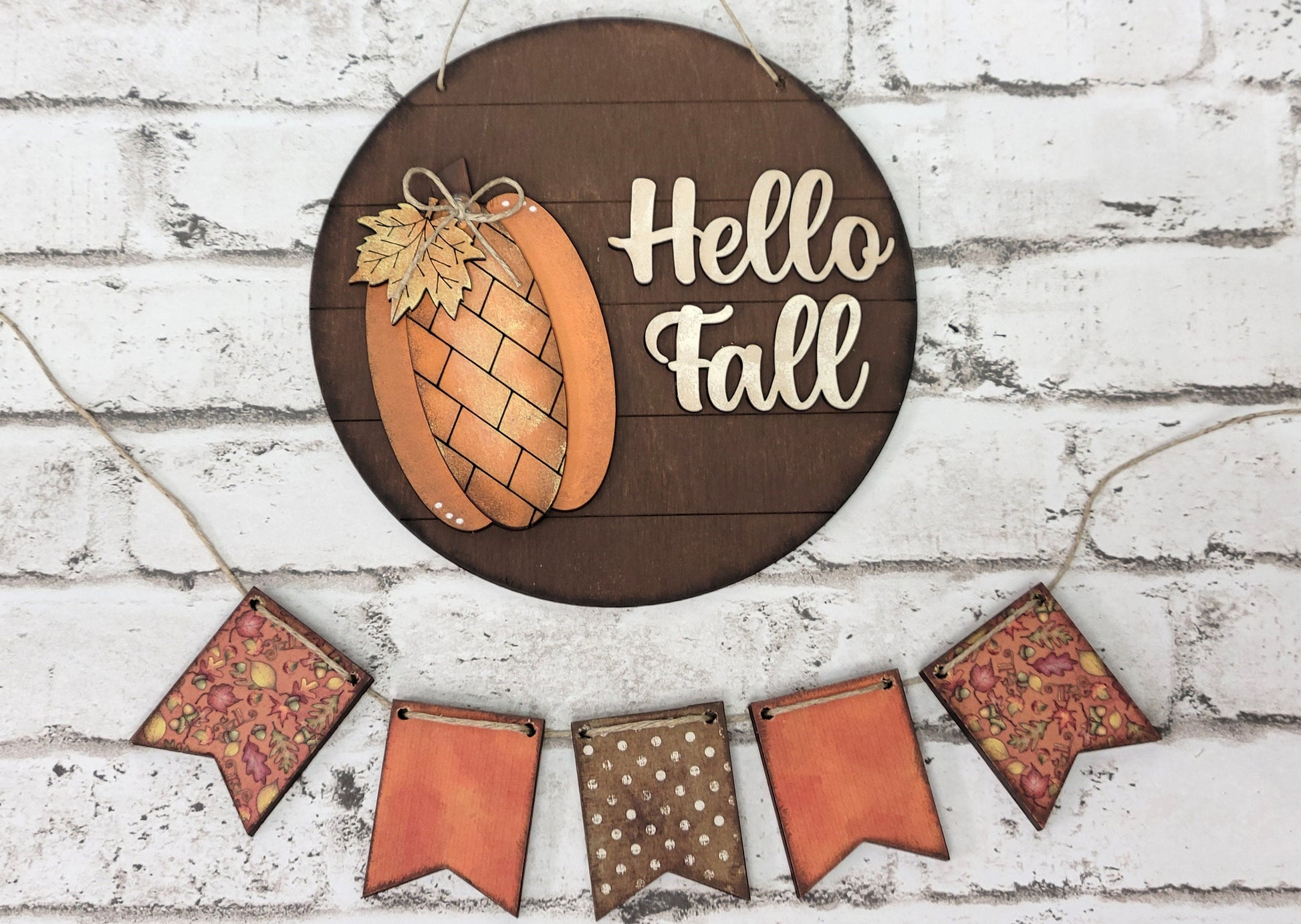 These seasonal 6" round signs are laser cut and hand painted. Multiple pieces are cut from 1/8" or 1/4", painted and assembled on a 1/4" thick wood sign. Jute hanger allows for hanging on my rectangular display or small post sign hanger sold separately.