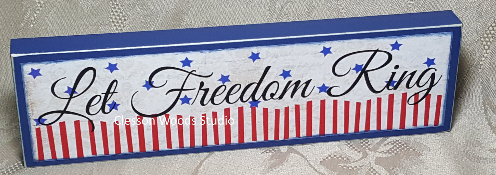 Let Freedom Ring Patriotic Wood Sign (Blue)