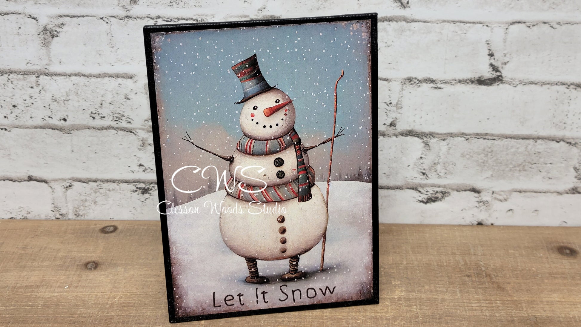 Let It Snow Primitive Snowman 5"x7" Canvas Insert