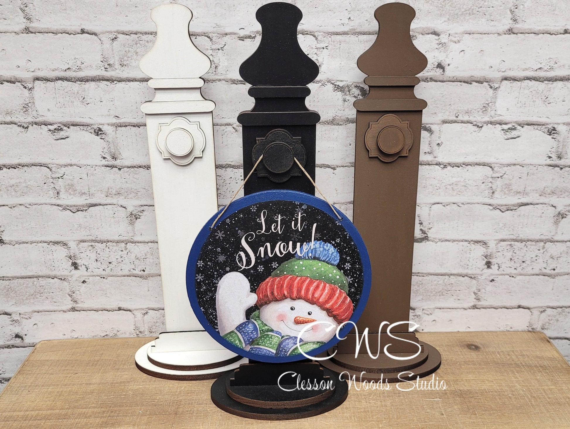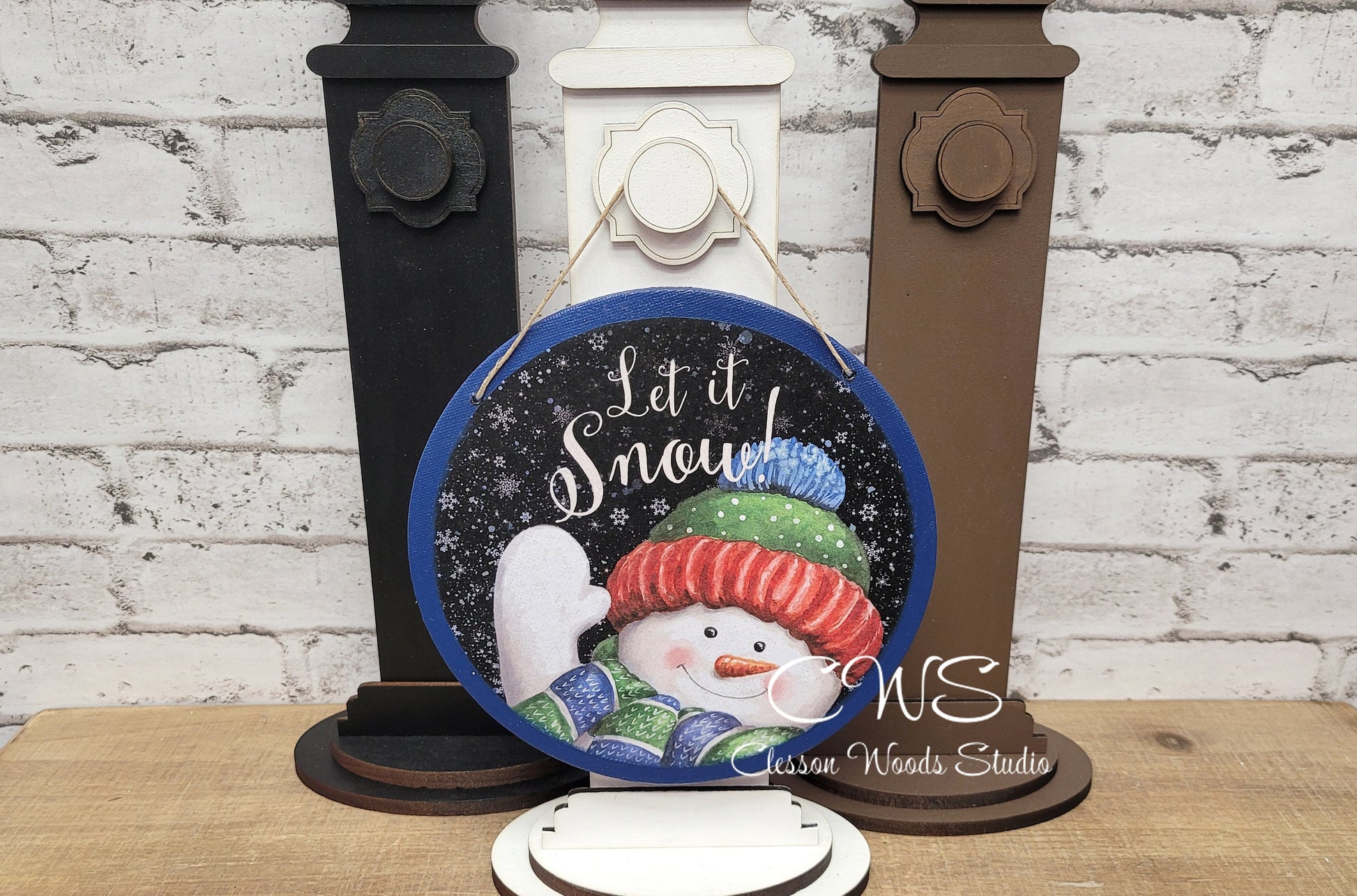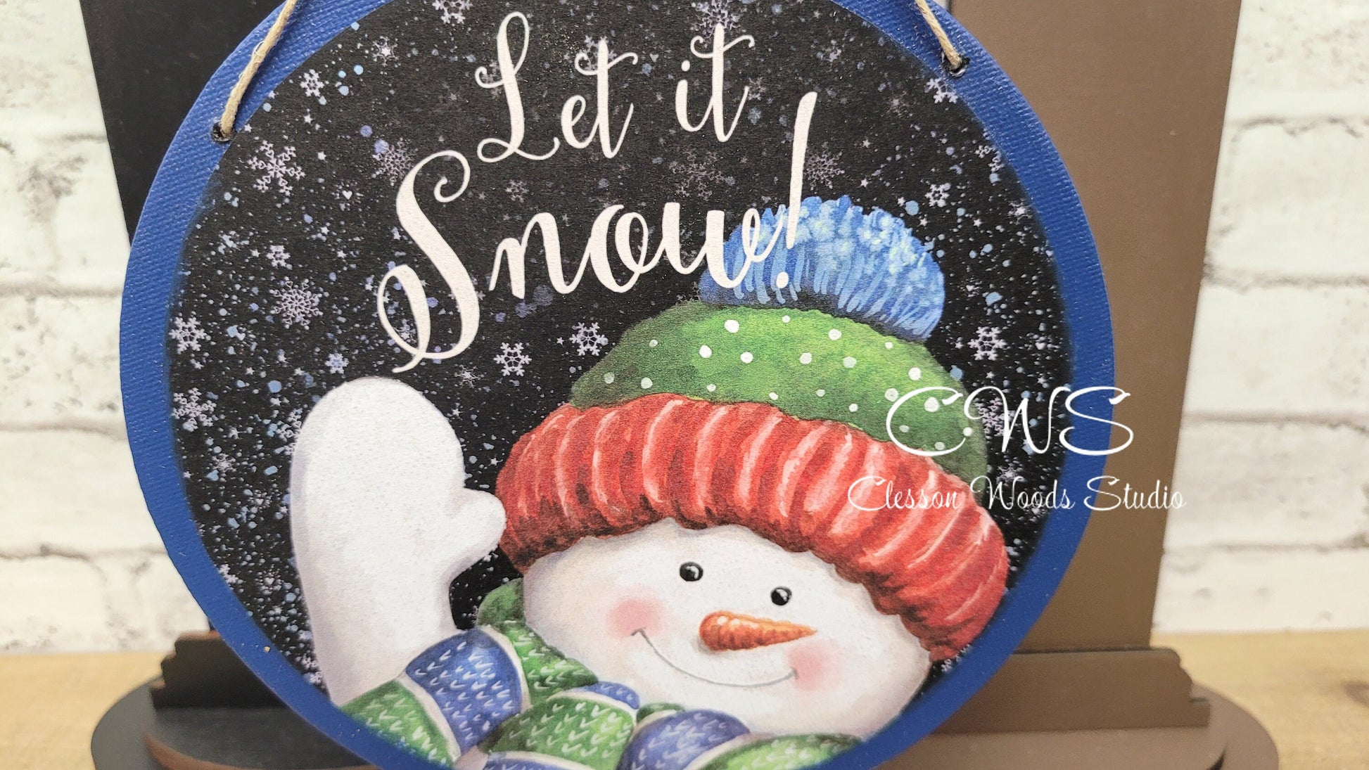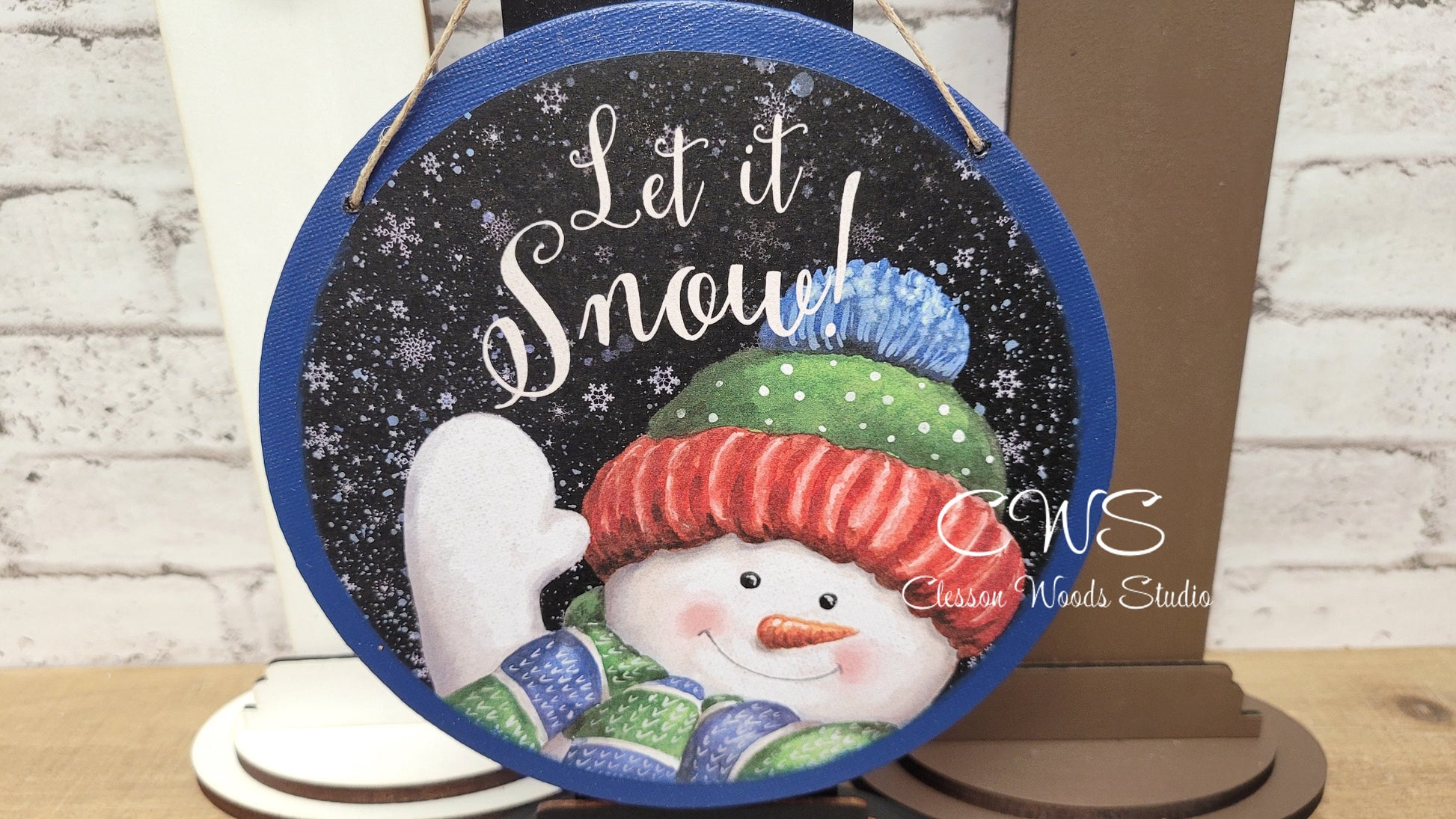 Let It Snow Waving Snowman 6 Inch Round Hanging Sign