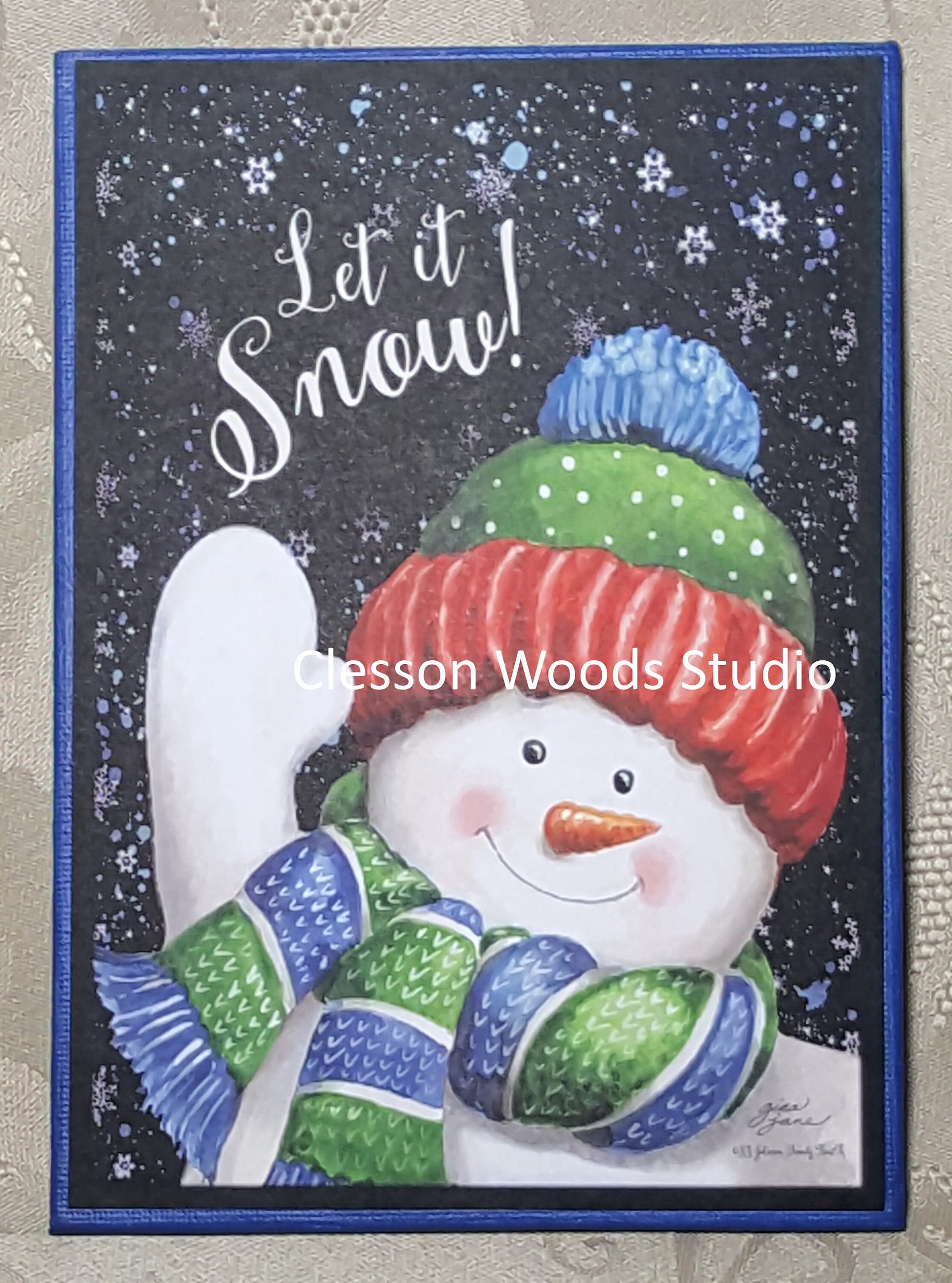 Let It Snow Waving Snowman (Blue) 5x7 Canvas Insert