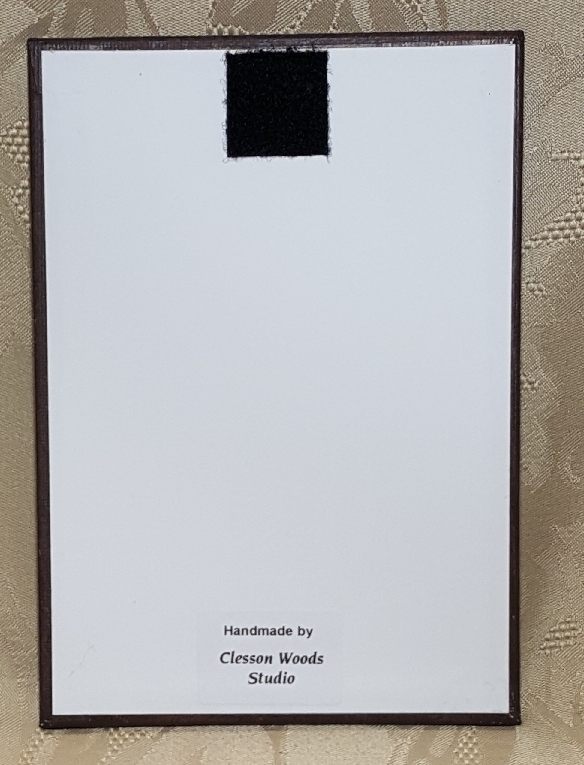 The back is nicely finished and comes with hook & loop fastener (either attached or included) for use with the block style insert holder.