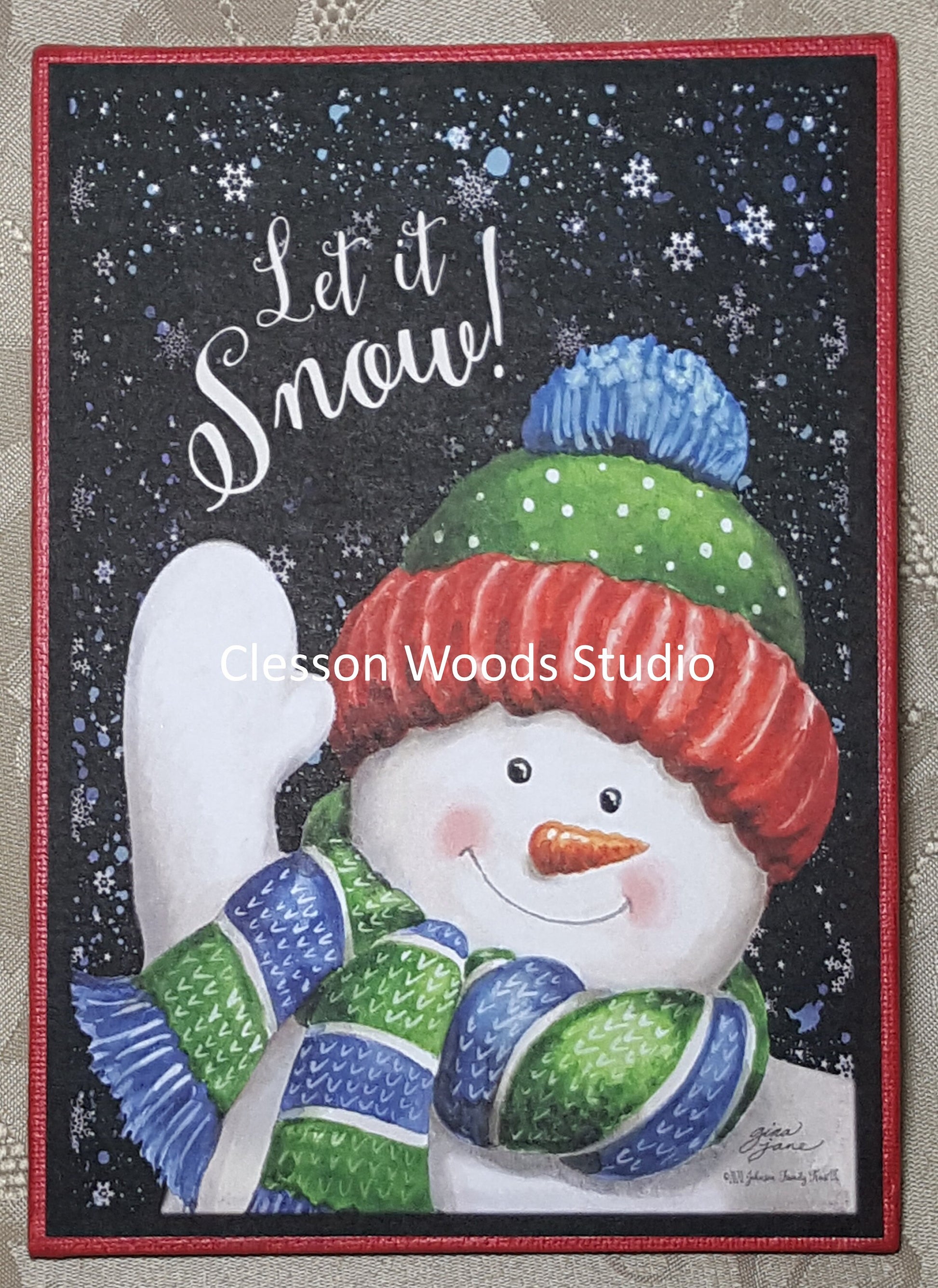 Let It Snow Waving Snowman (Red) 5x7 Canvas Panel