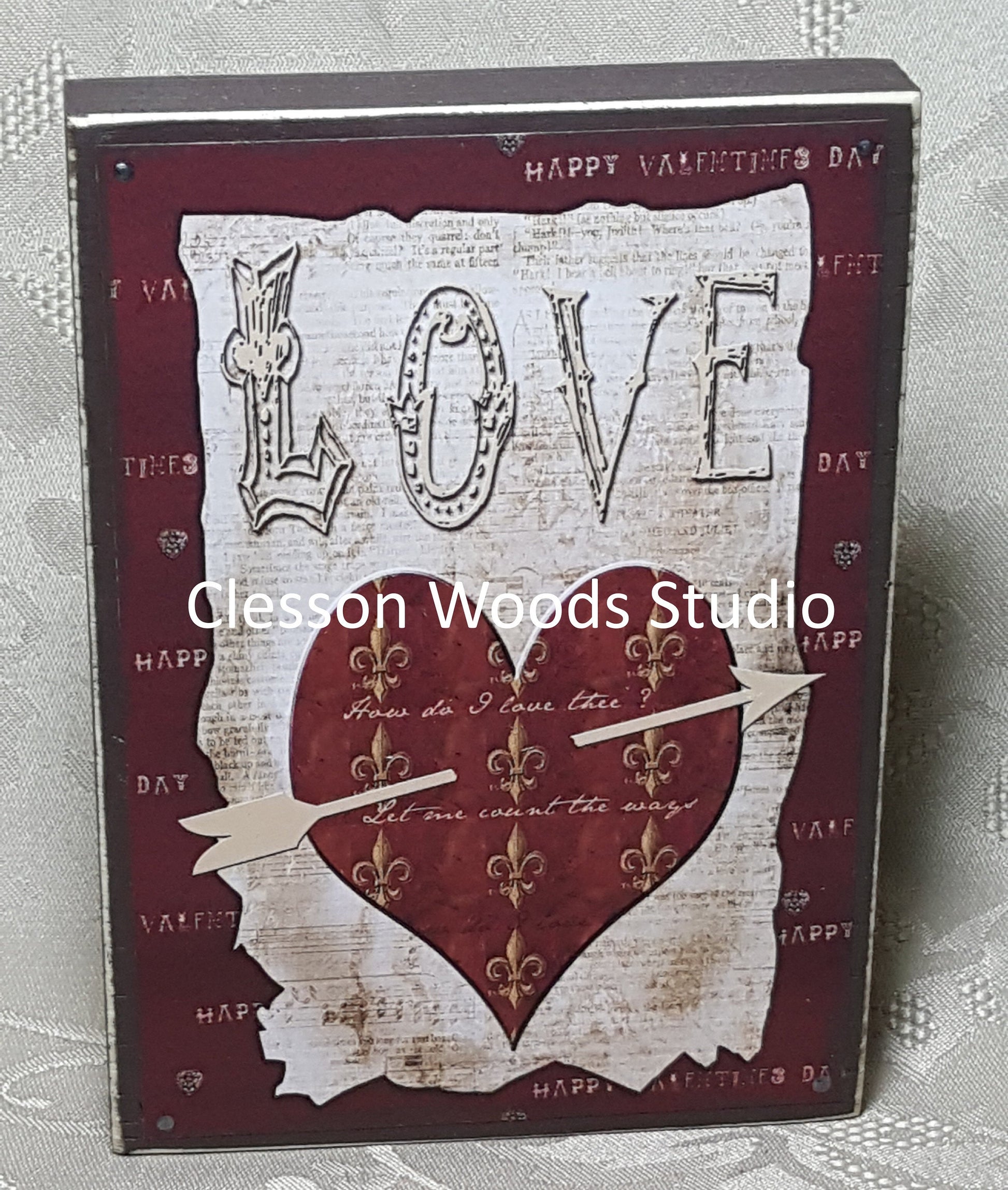 You will love both sizes of these wood block signs because they fit perfectly on a desk, counter, tiered tray, shelf or side table. Choose 4"x5.5" small or 5.5"x7.5 large and these are 3/4" thick. Each block is painted a rich autumn brown in a satin finish (including the back). The artwork is permanently applied with the edges blended with paint to match the wood block. Finally, I sand the edges to reveal the raw wood for a slightly worn look.