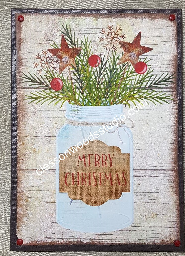 Merry Christmas Mason Jar 5"x7" Canvas Insert