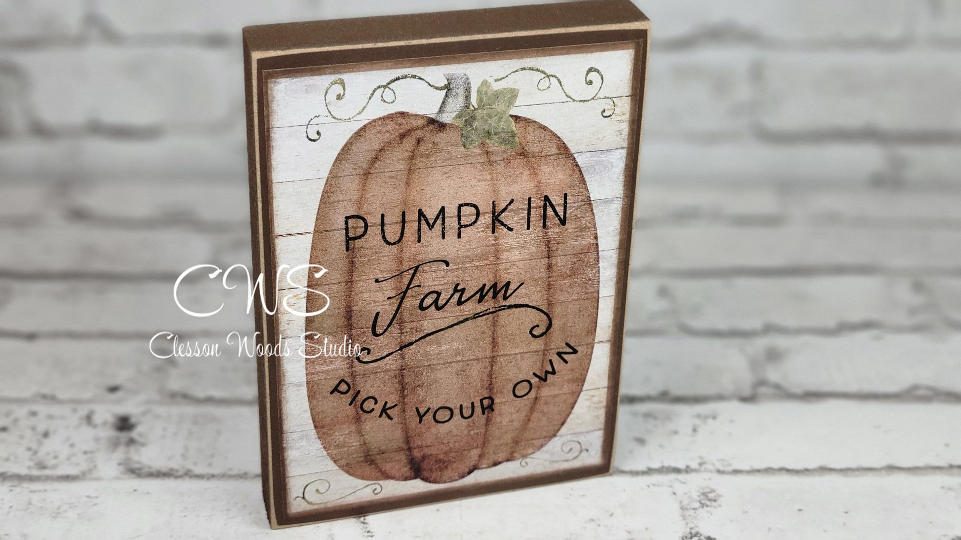 Pumpkin Farm Primitive Fall Wood Block Sign