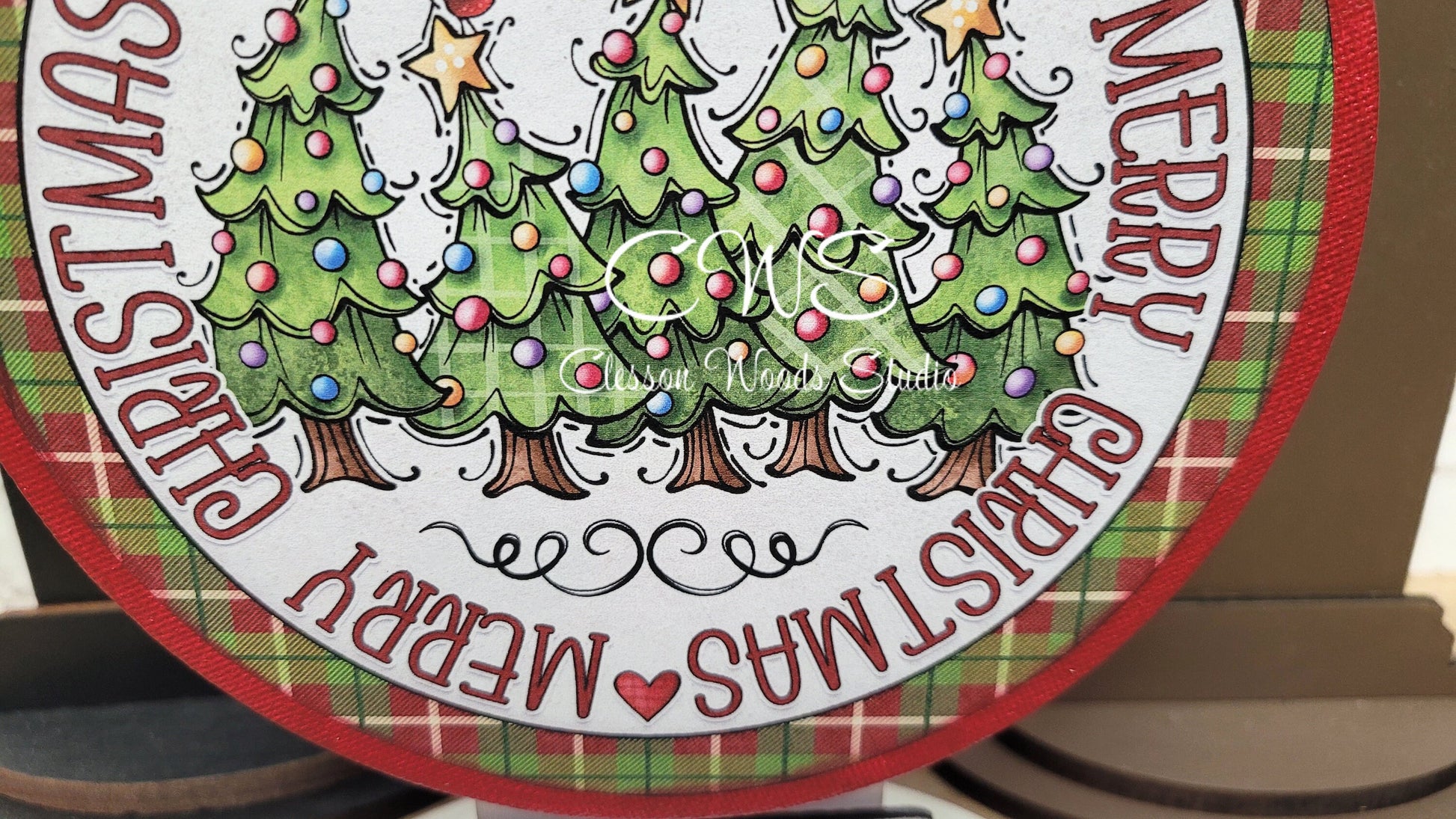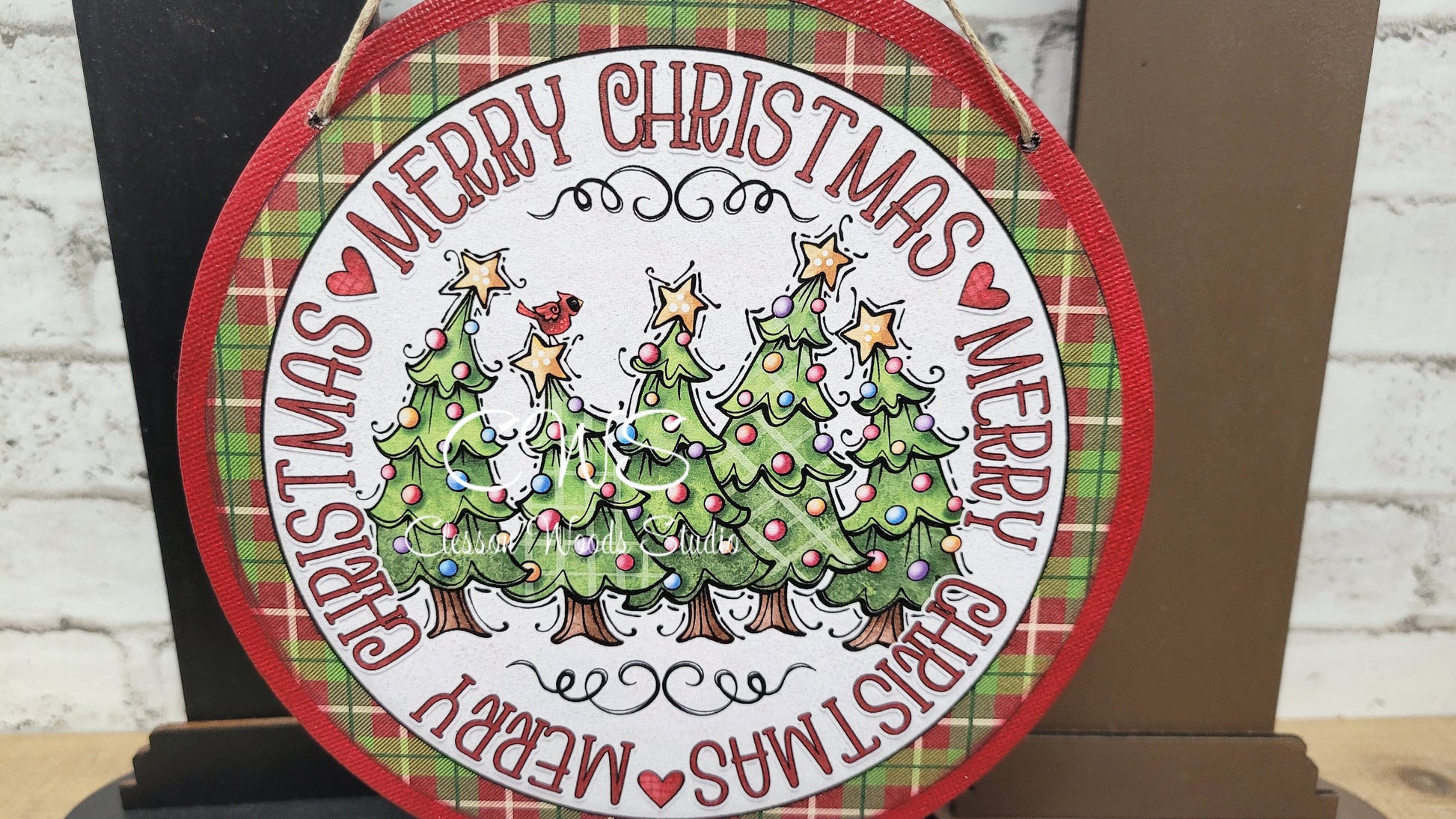 Red Merry Christmas Trees 6 Inch Round Hanging Sign