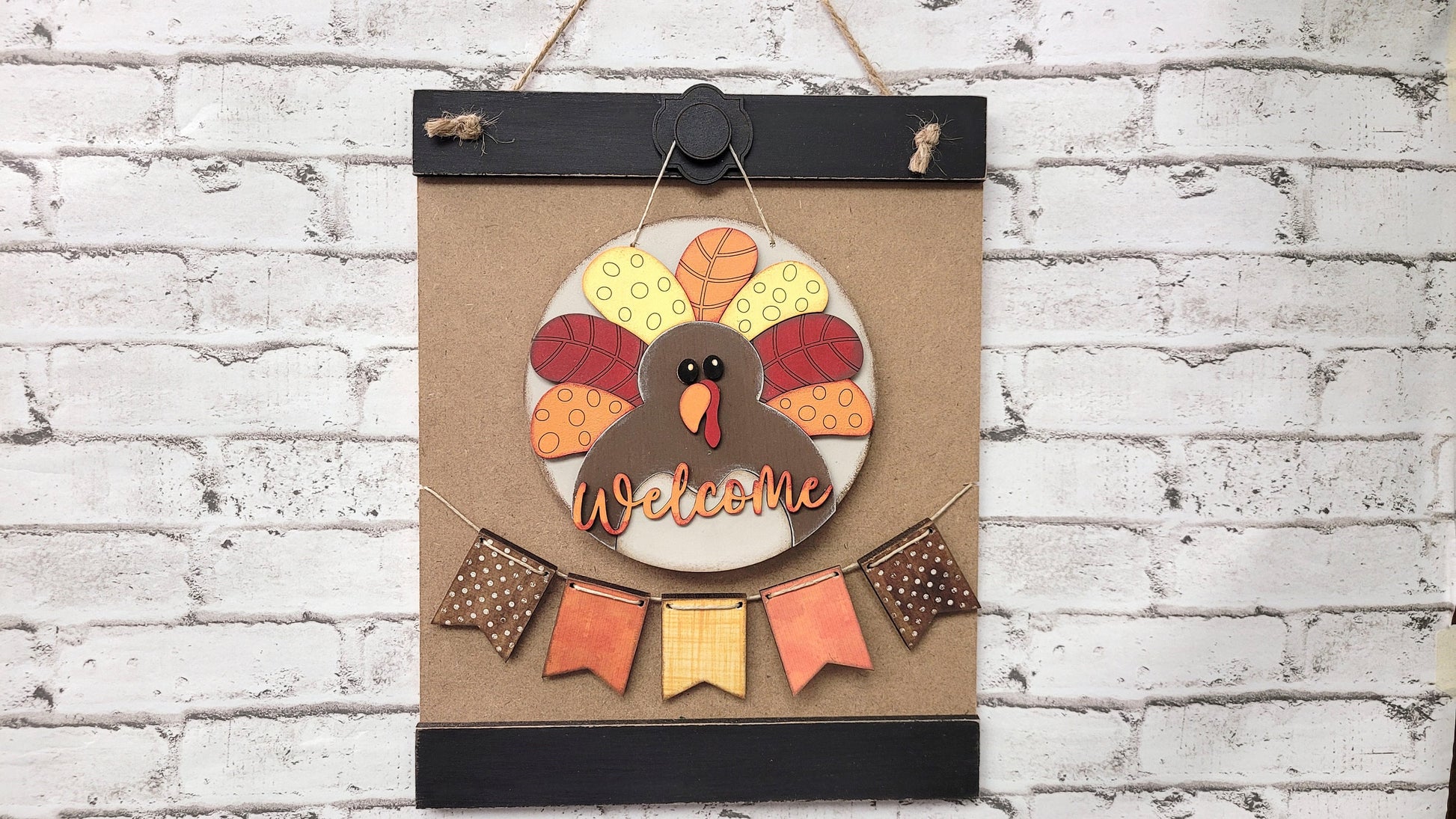 Use this hanging display for 6" Round Signs and Coordinating Banners. This sign is made from 1/4" with 1/4" top and bottom rails and 1/8" plaque to hang the signs from. Use the slots cut in the sides to position your banner and tie the banner behind. Jute hanger is attached on top for easy hanging on your wall or door. For Indoor Use Only.