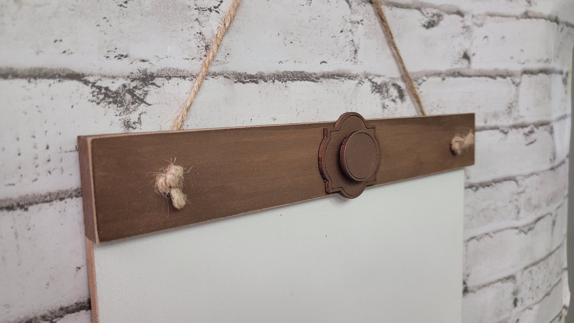 Use this hanging display for 6" Round Signs and Coordinating Banners. This sign is made from 1/4" with 1/4" top and bottom rails and 1/8" plaque to hang the signs from. Use the slots cut in the sides to position your banner and tie the banner behind. Jute hanger is attached on top for easy hanging on your wall or door. For Indoor Use Only.