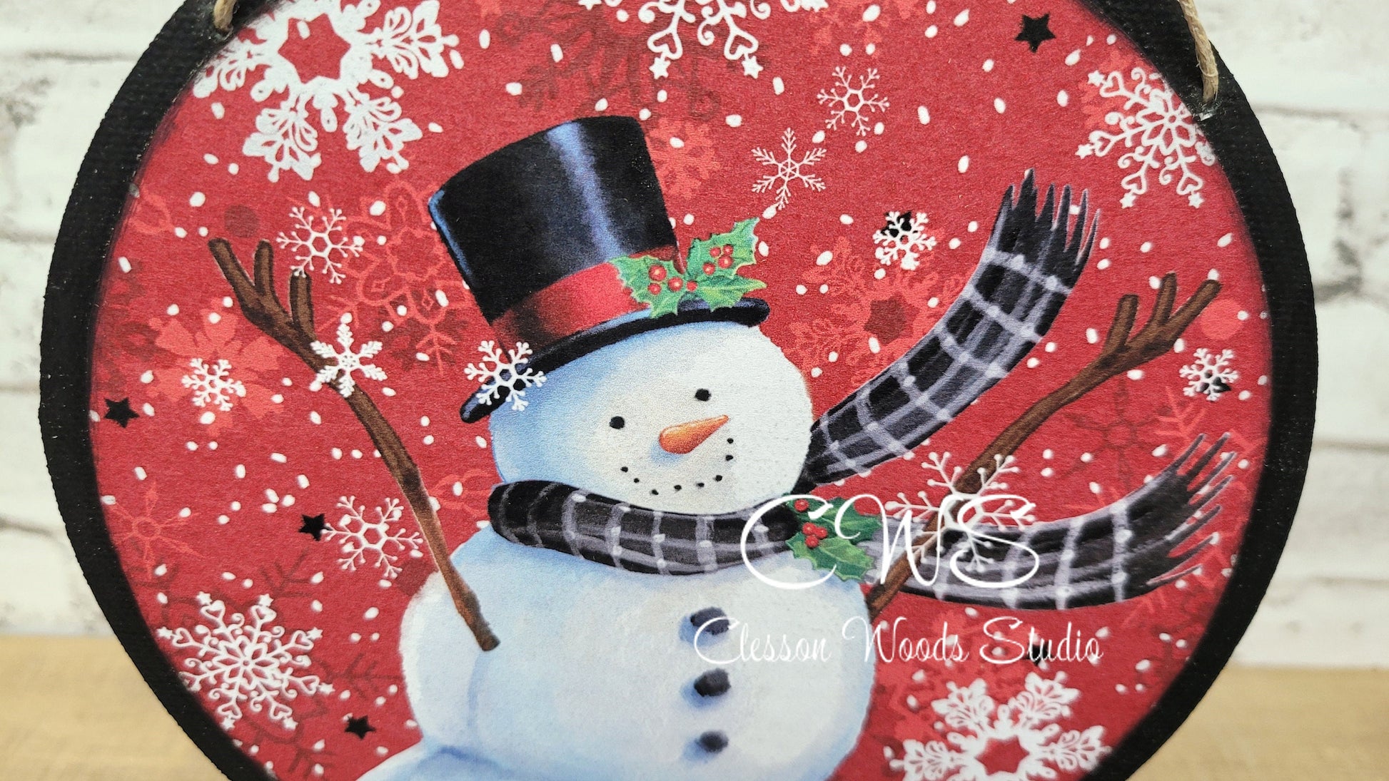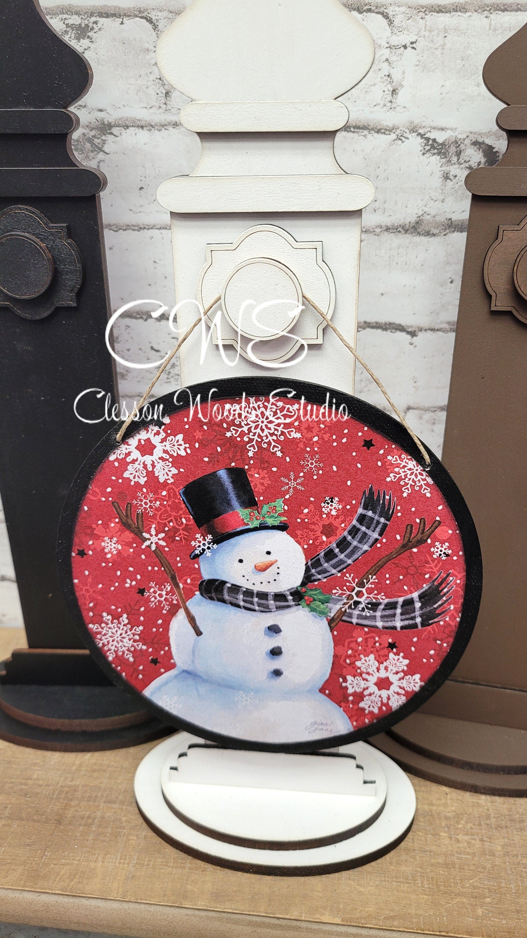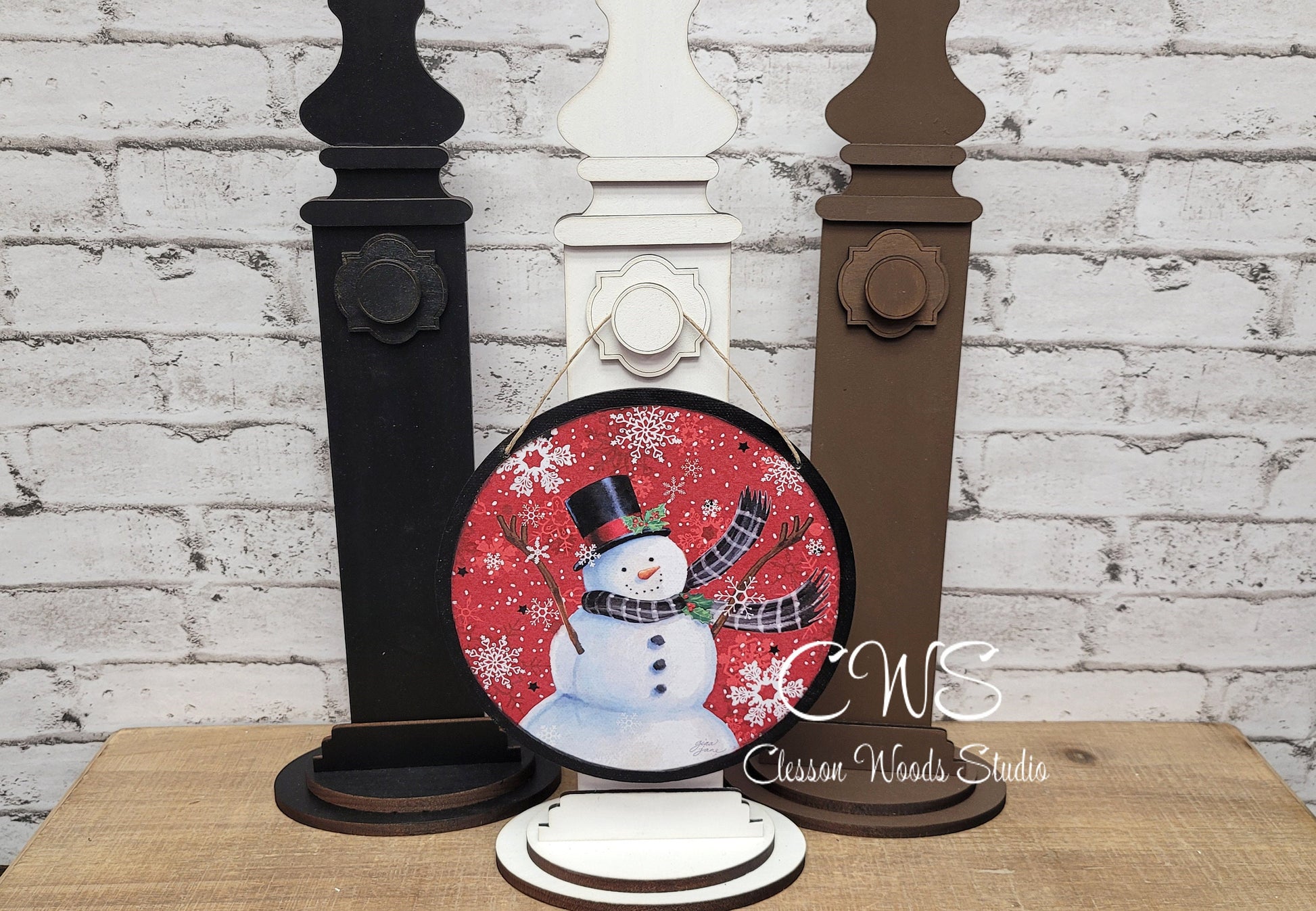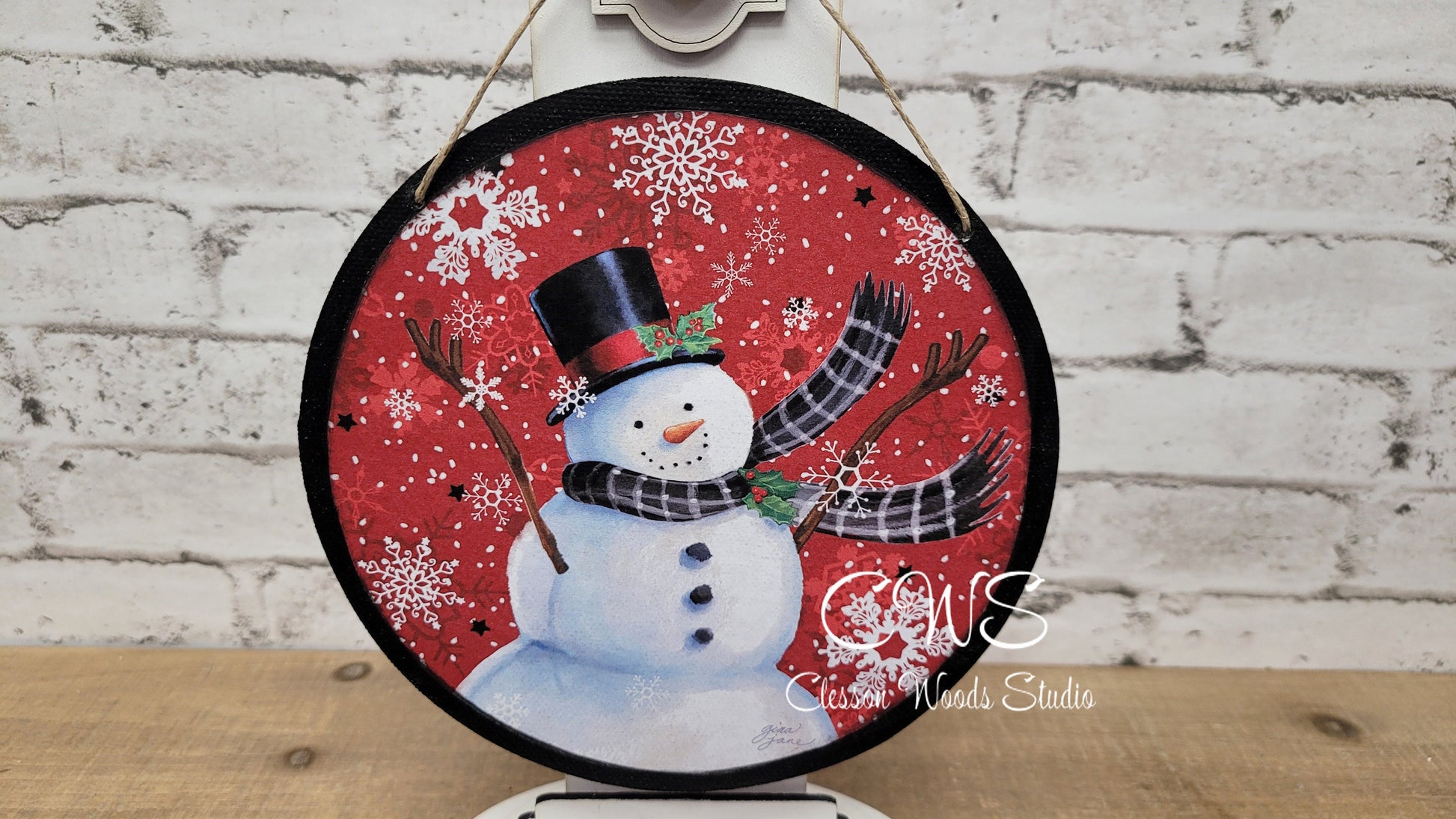 These 6" round signs are made from 1/8" rigid canvas that I've painted. The seasonal round image is printed on specialty adhesive paper and permanently applied to the painted canvas. I've shaded around the image with matching paint for a seamless blend into the canvas background. Jute hanger allows for hanging on my Small Post Sign Holder SOLD SEPARATELY. For indoor use only. Not suitable for outdoor use.