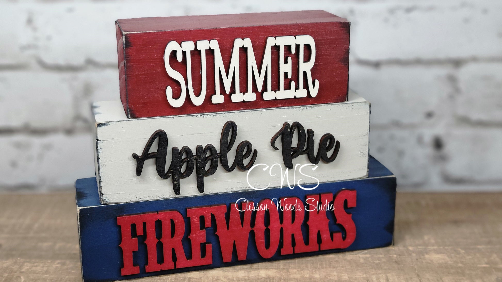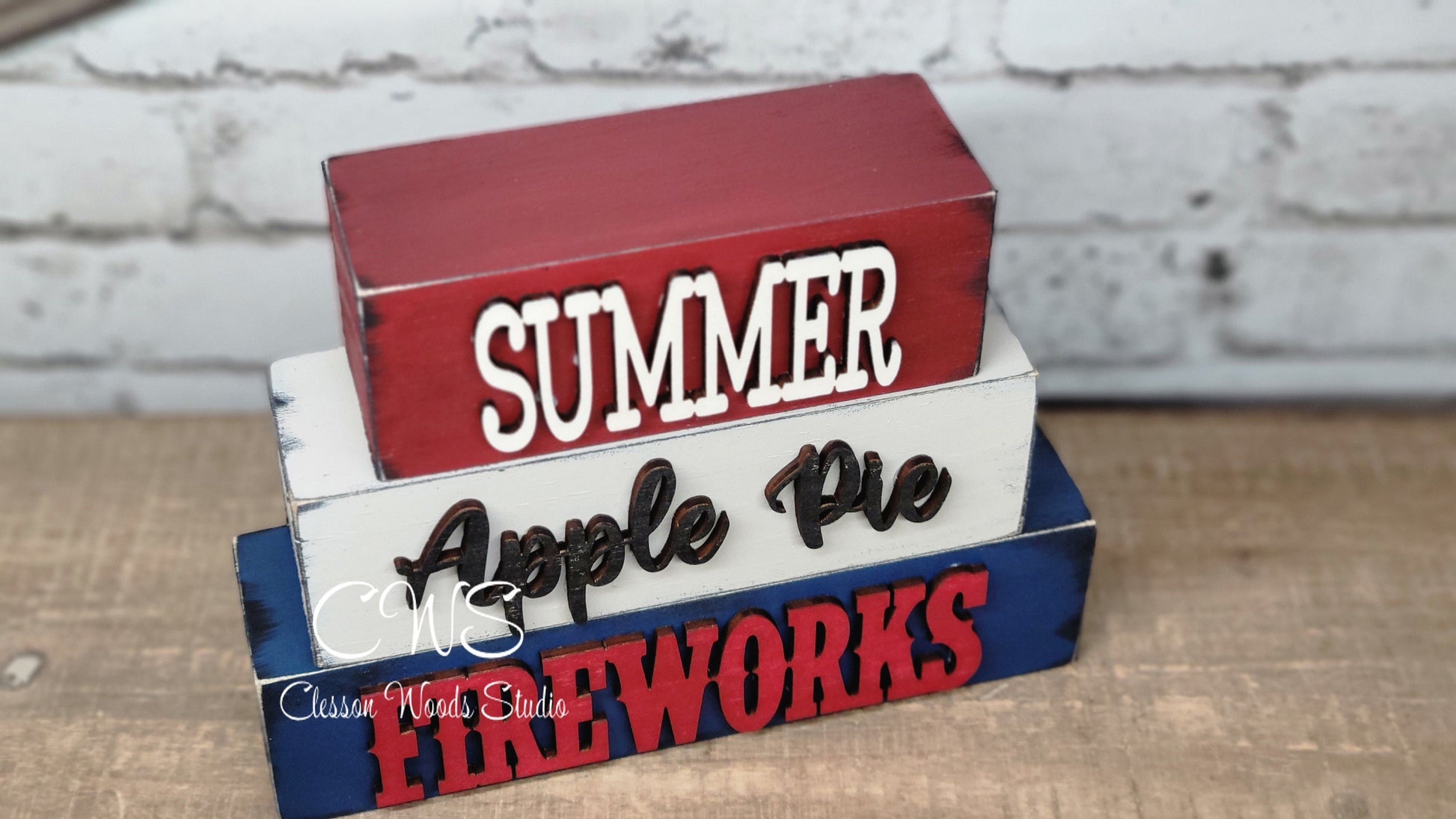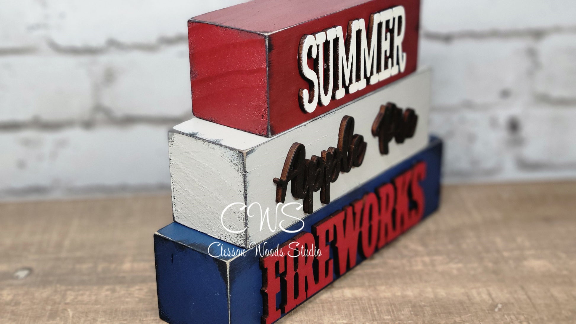 Summer Apple Pie Fireworks Wood Word Block Stack