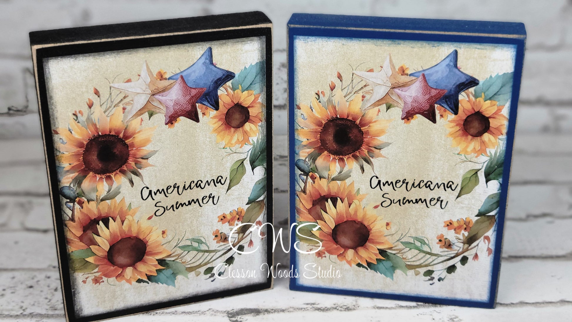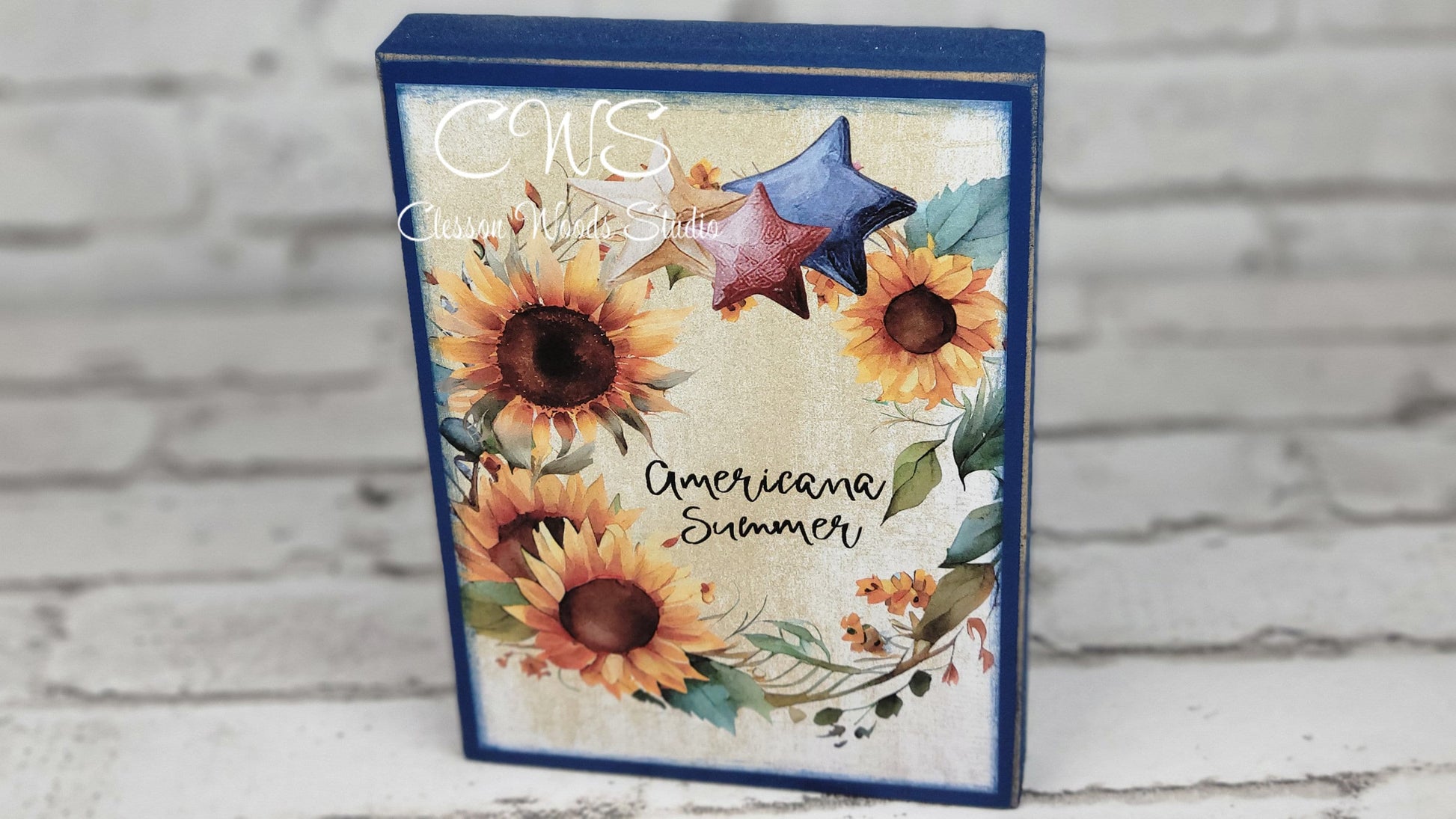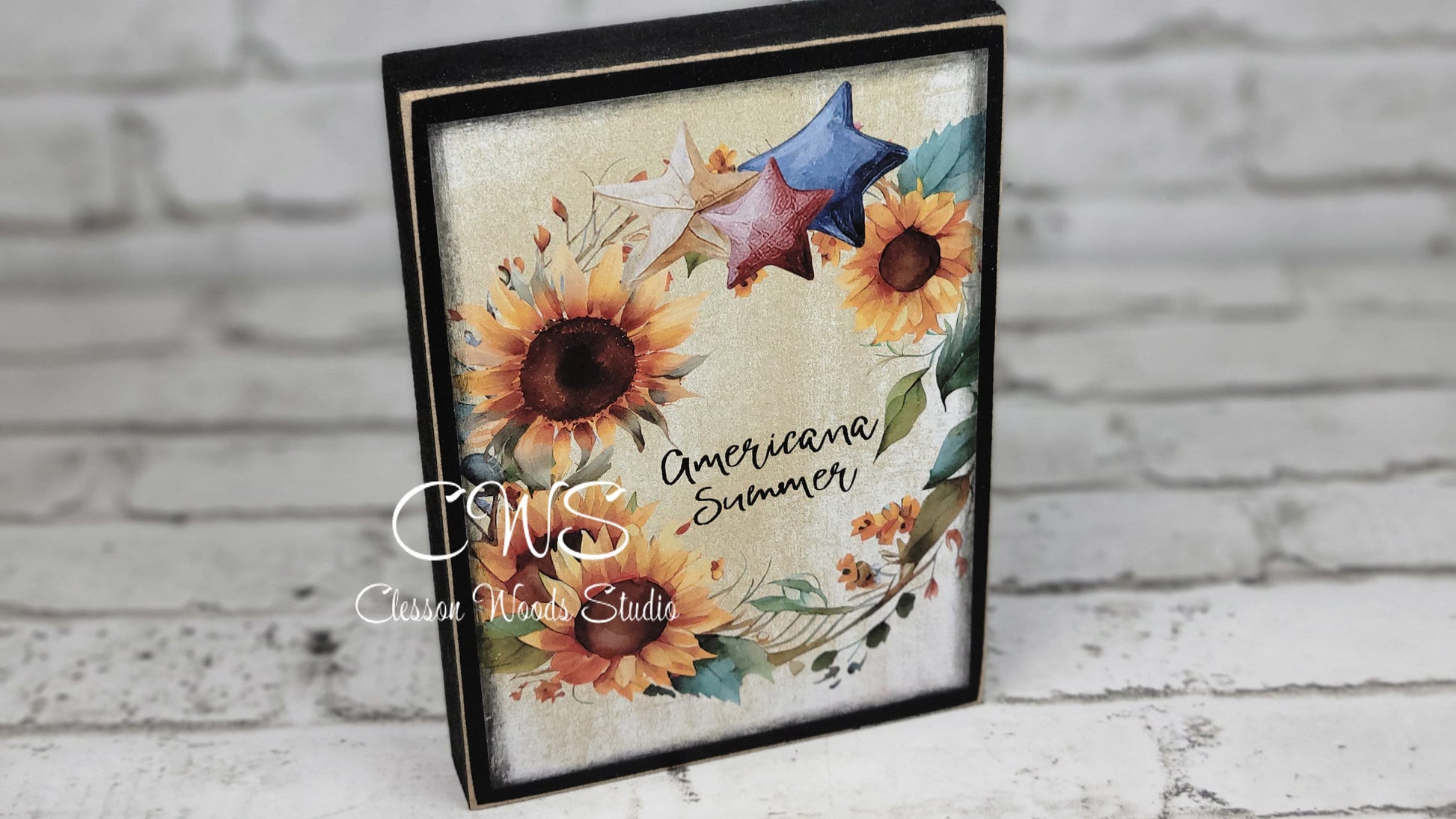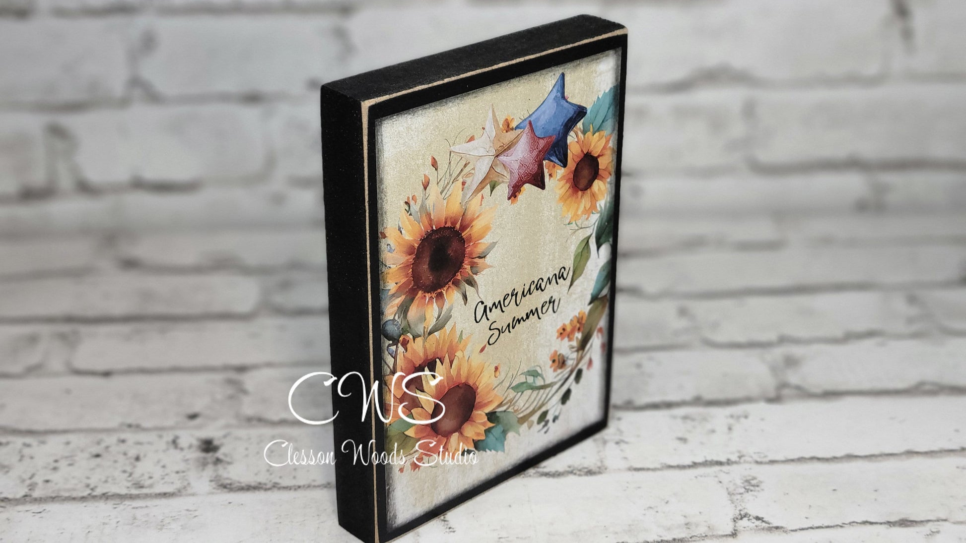 Sunflower Americana Summer Wreath with Stars Wood Block Sign