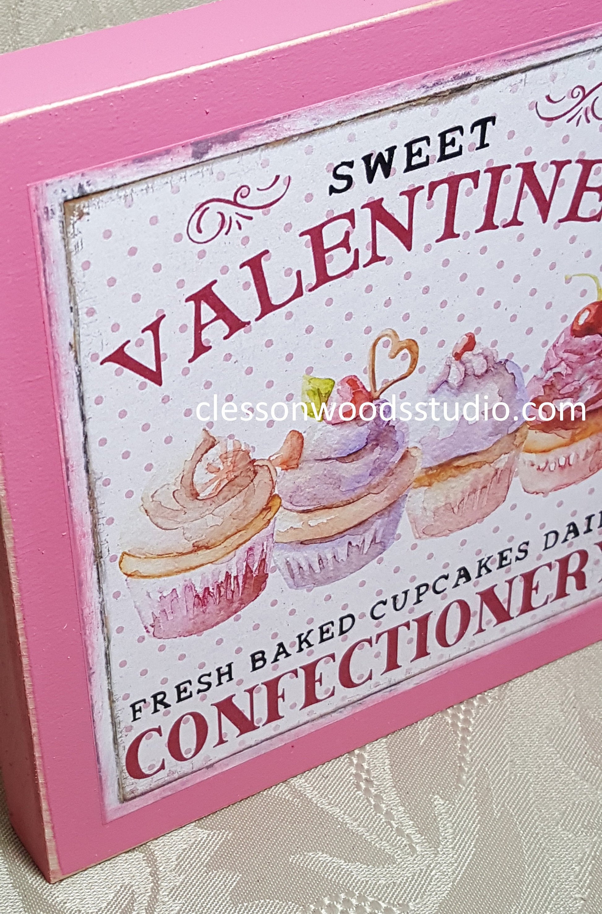 Sweet Valentine Confectionery Pink Wood Block Sign