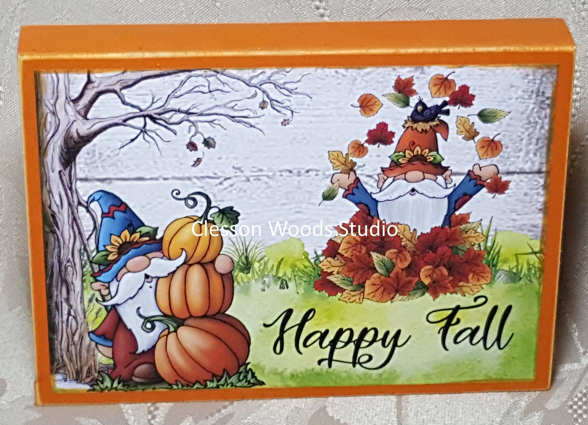 Start your collection of holiday Gnomes with these two adorable guys! Here is a great Fall sign to add to your desk, table or tiered tray for an added touch of the season. I cut premium quality pine to 4" x 5 1/2" and it is 3/4" thick. All sides are painted a rich satin finish high quality paint. The design is printed and permanently adhered. I have blended the design into the block with more paint for a high quality piece. The edges are sanded slightly for a worn look.