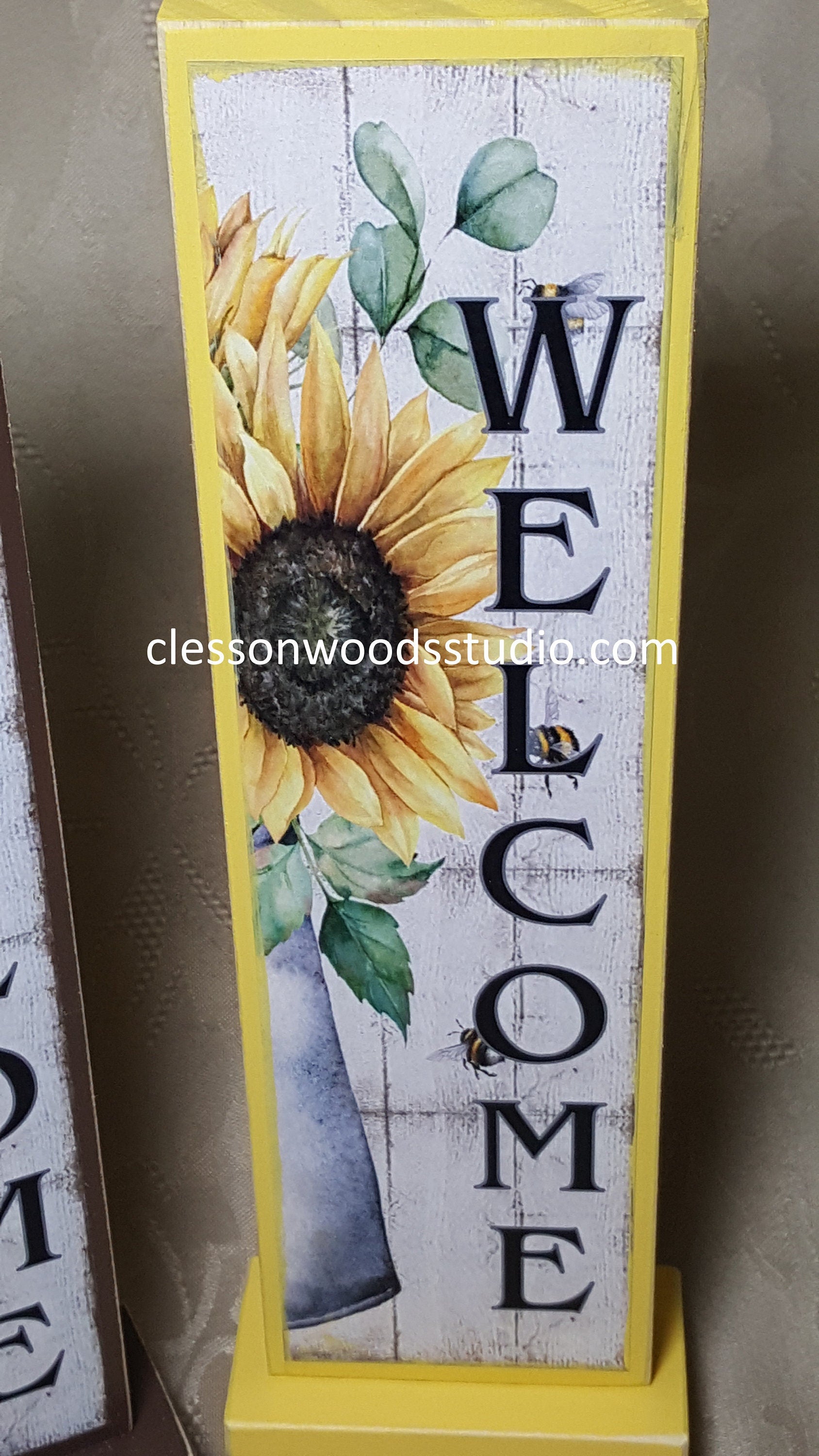 Welcome Sunflower Vertical Wood Sign
