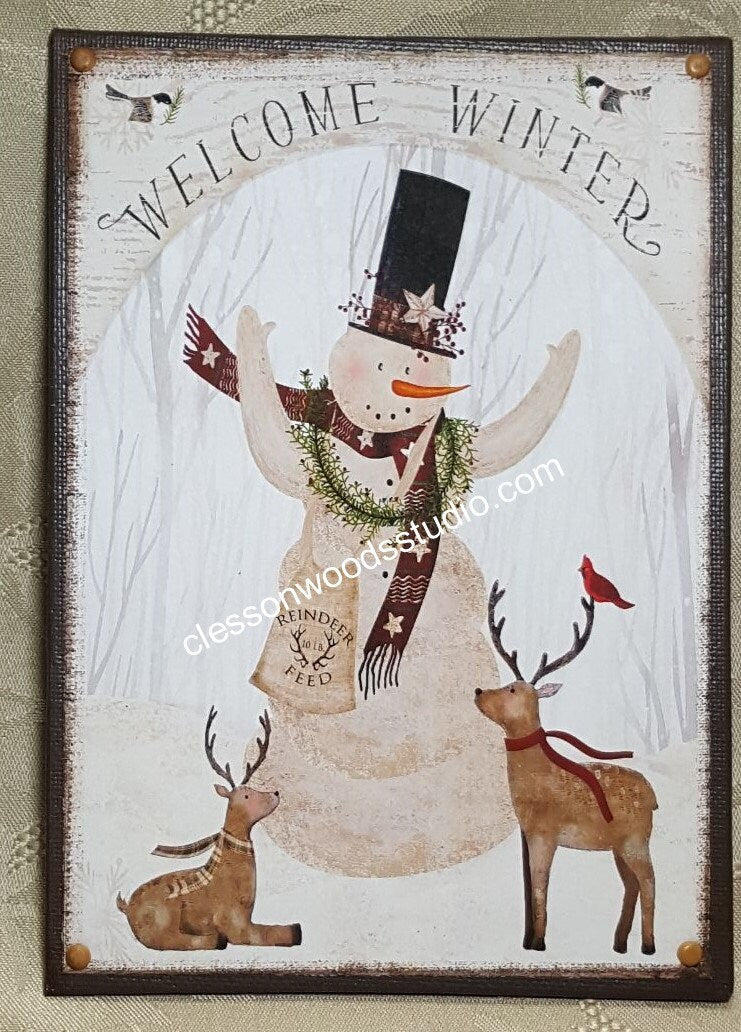 Welcome Winter Snowman 5"x7" Canvas Insert