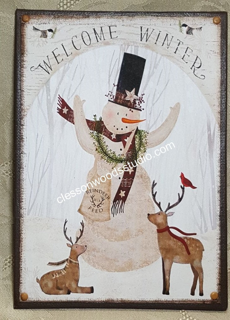 Winter Welcome Snowman 5"x7" Canvas Insert